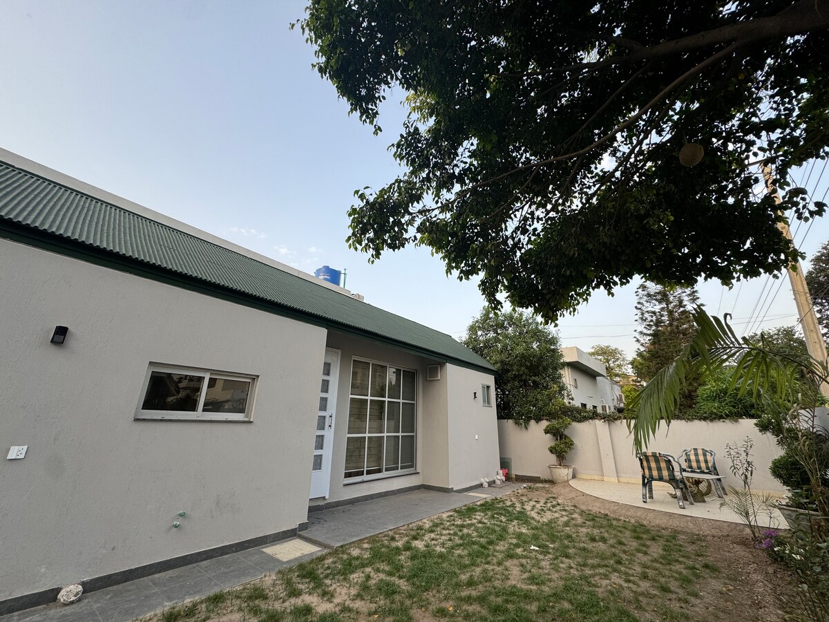 Located in a prime area of Lahore, this fully furnished 1-bedroom home is perfect for families, married couples, overseas Pakistanis, and foreigners. Just minutes from Mall Road, Cantt, DHA, and Raya, it’s safe, central, and easily accessible. The house features an attached bathroom, powder room, spacious living room, kitchen with cutlery, dining area, private lawn with seating, and a large car porch. Comfort, convenience, and security all in one! Please contact host before booking.