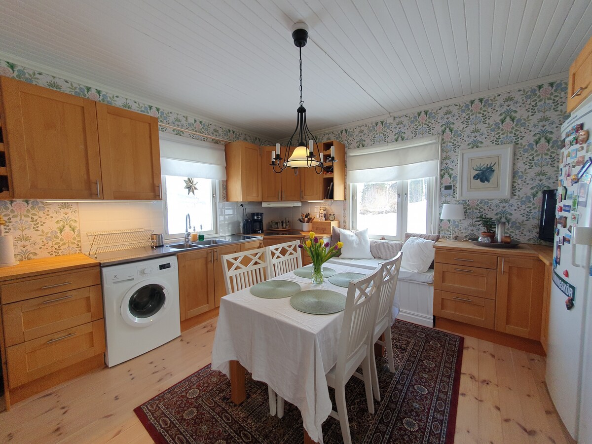 Here is an older cottage with a lot of charm to rest in. Breakfast included! The kitchen in the cottage is simple with a wood stove, electric mini oven and microwave. Possibility to use a fully equipped kitchen in the main house where toilet, shower and washing machine are also available. The wood-fired sauna warms well and there is also a sitting tub and battery-powered shower. On the porch, you can hear the water from the pond and a stone staircase leads you down to a lovely place for a coffee break. Borrow the kayak and paddle up from the pond.