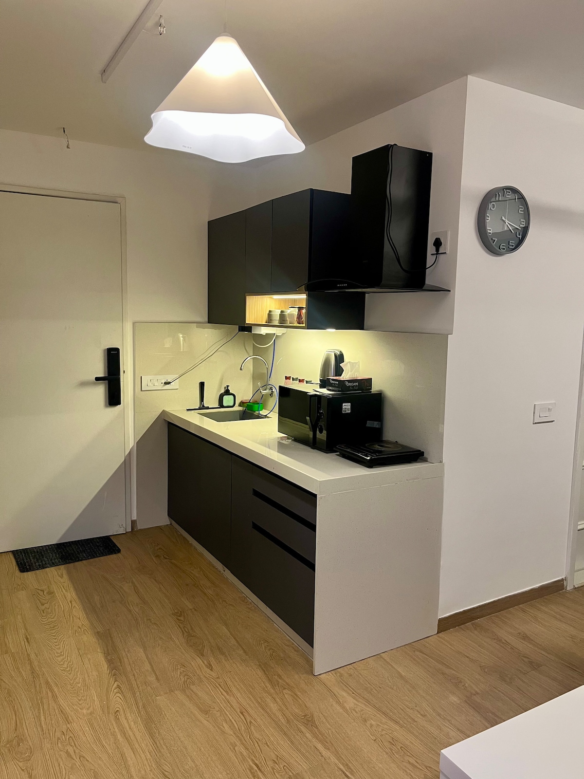 Welcome to our brand-new, spacious 2-BHK apartment, ideal for families and couples seeking comfort and convenience. The bedrooms have queen size beds with orthopedic mattresses and AC for a restful night's sleep. Relax in the large living room with a 43-inch Smart TV, lightning-fast WiFi and a dedicated dining area. Comes with two super clean bathrooms stocked with bath essentials. The fully equipped kitchen includes high-quality appliances and crockery for your culinary adventures!