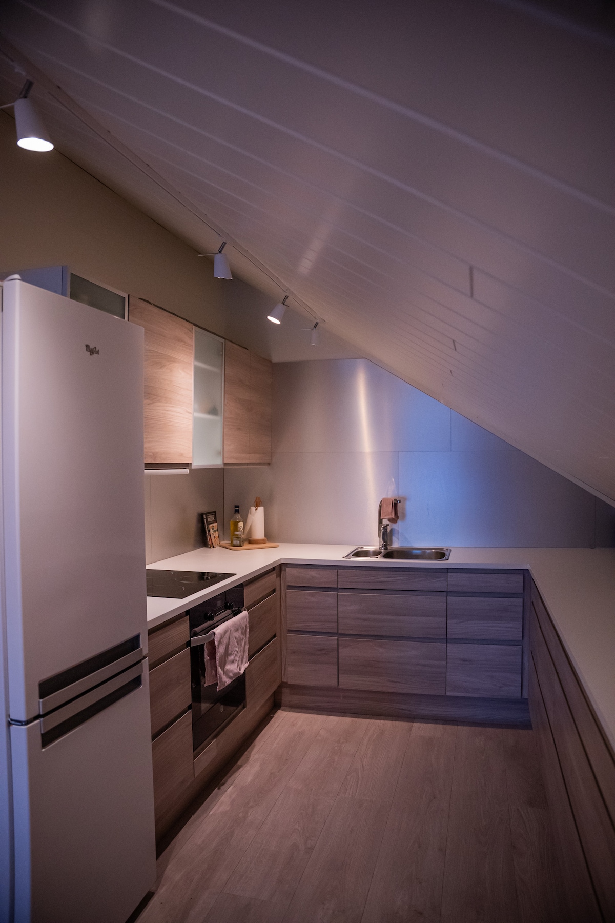 Here you live centrally in the middle of a private park right by the sea. Short distance to most things, reindeer and northern lights can also be found here. Bus stop, supermarket, pizza restaurant and 24-hour kiosk are only 2-300 meters from the apartment.