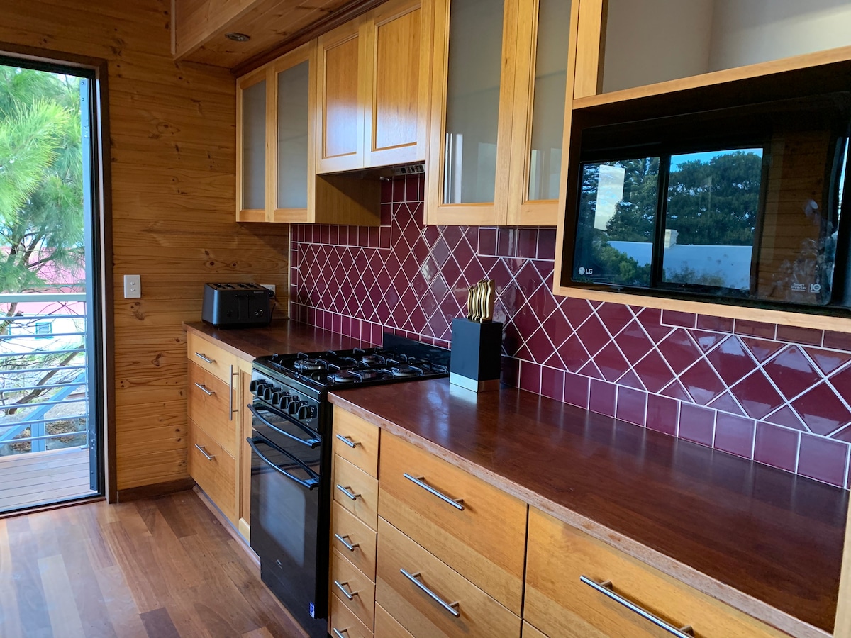 Guests will be delighted with the lovely karri forest outlook from the bedroom and living area / kitchen. This house has everything you need, including smart tv, all modern appliances, reverse cycle AC, coffee machine, dishwasher, high quality furnishings, BBQ & outdoor table. The town house has a spacious bathroom and gym and laundry facilities and is only a short stroll from coffee shops and the main town centre. A very special experience for a couple's weekend getaway.
