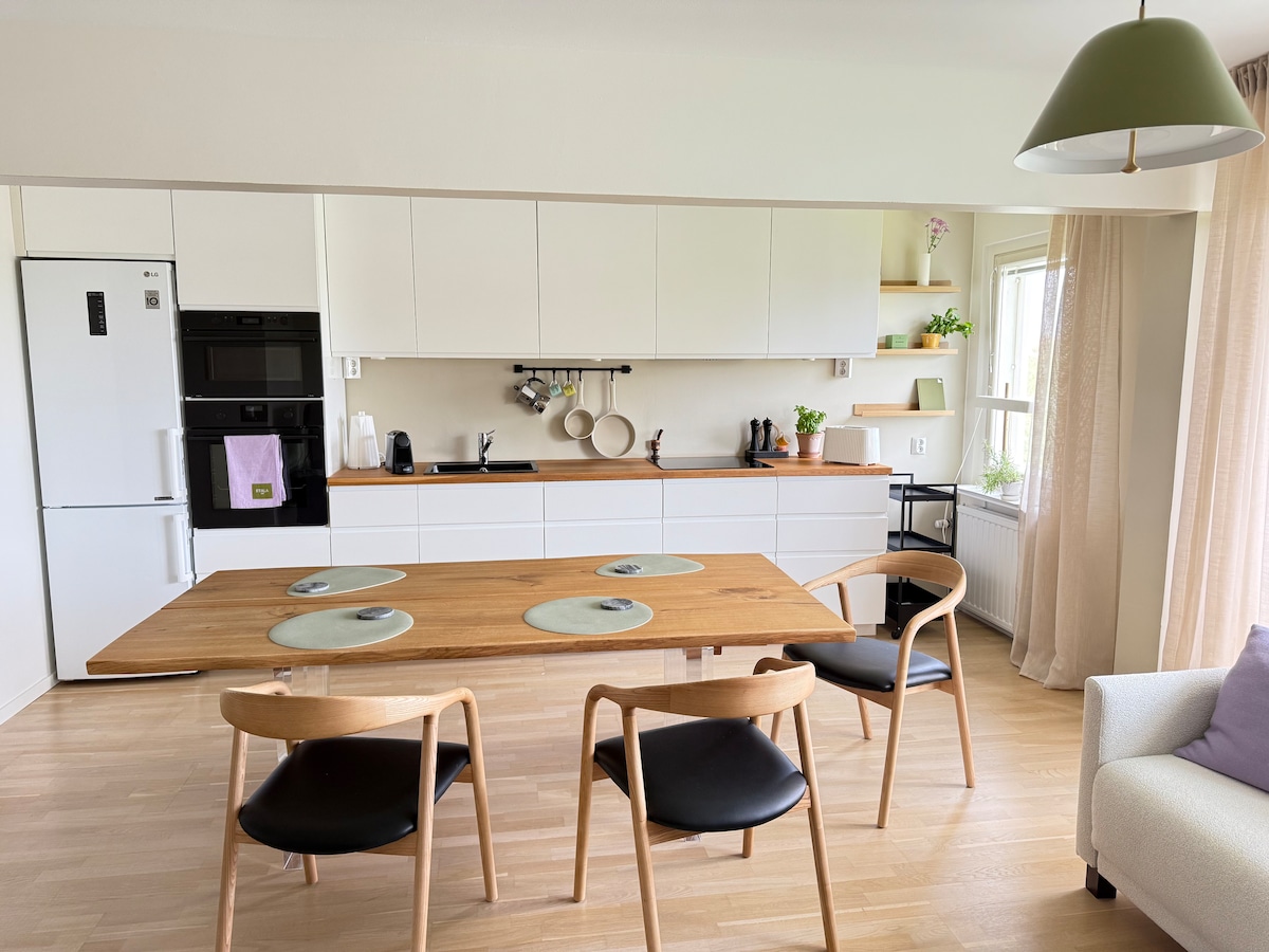 Welcome to stay in a new studio with a great location! • Close to free street parking • 9 min walk to train and bus station, 5 min to market • High-quality furnishings • Great beds for two • Clean sheets, comprehensive kitchen utensils, hygiene products and a drying washing machine • Chromecast, WiFi, books, games • Close to attractions and services "Beautiful and clean apartment, as if you had stepped into a better hotel room! The host is wonderfully helpful and friendly."