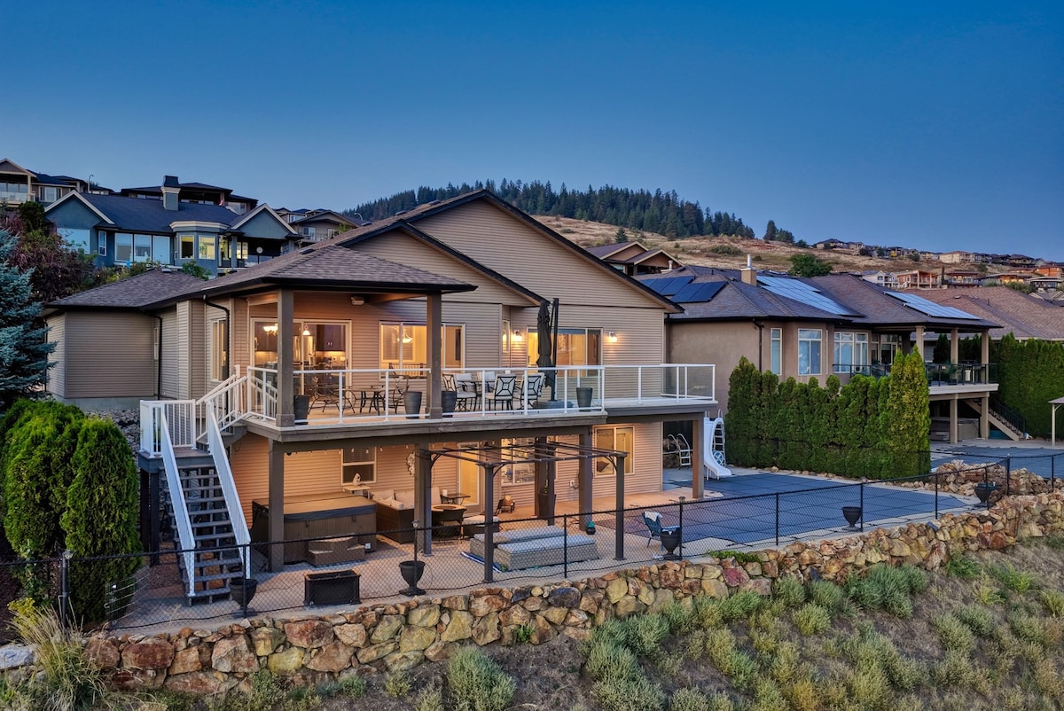 Mid term rentals in off season! Contact for details. This Private Home Oasis awaits you in the beautiful Shuswap. Stylish design, open concept for a comfortable stay, loads of natural light. Sunsets with lake, mountain & city views off the front. Sunrise on Private back deck. 5 min to the beach, downtown Wharf and more. Tiki Bar to visit by the pool. Beaches, trails, wineries, pubs, restaurants, downtown Shopping. Easy Hwy access. Pool open for summer season. Hot tub always open!