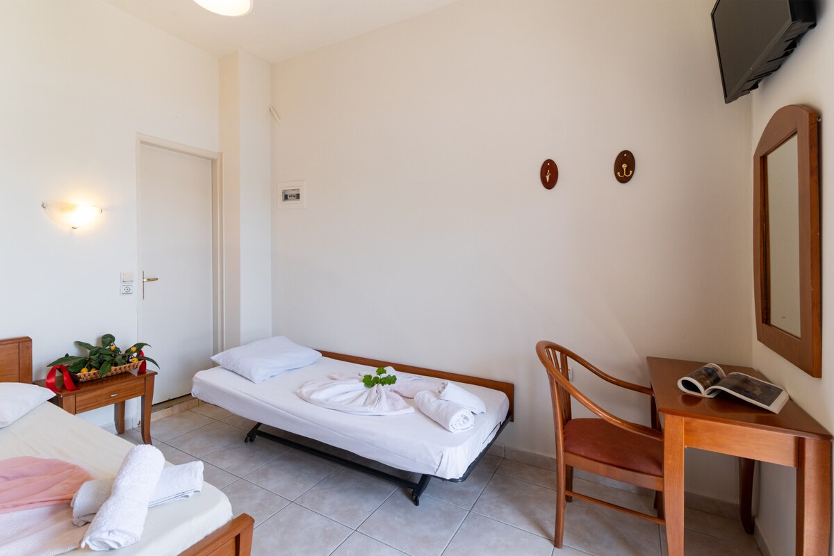 You enter our house,that is on the 1st floor without our presence. There is a safety box next to the house entrance with the key. Our house is very spacious and includes a sitting and dinnning area, three modern bedrooms with air condition and 1.5 bathrooms. It stands right on the Agrapidia beach. The only thing you will need, is your bathing suit and your flip flops. Important note: Please before booking , make sure that you have read all the information given about our house and the island.
