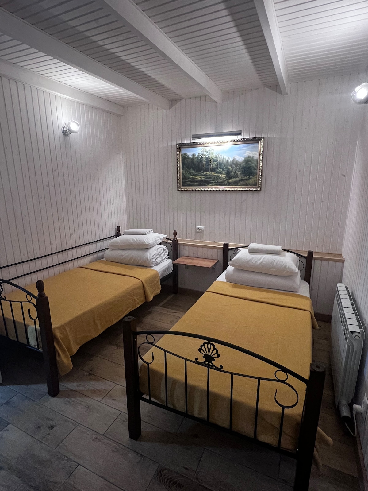 Our cozy cottage is designed for 4 guests and offers a unique vacation in harmony with nature. You will have two comfortable bedrooms: in the smaller room there is a 160x220 bed, and in the larger one there is a spacious 200x220 bed. The kitchen-dining room and bathroom with a shower will provide all the necessary amenities, including communications and the Internet. There is a place in the yard for cooking and making a fire. You can also order meals from a local hostess who cooks well and lives nearby.