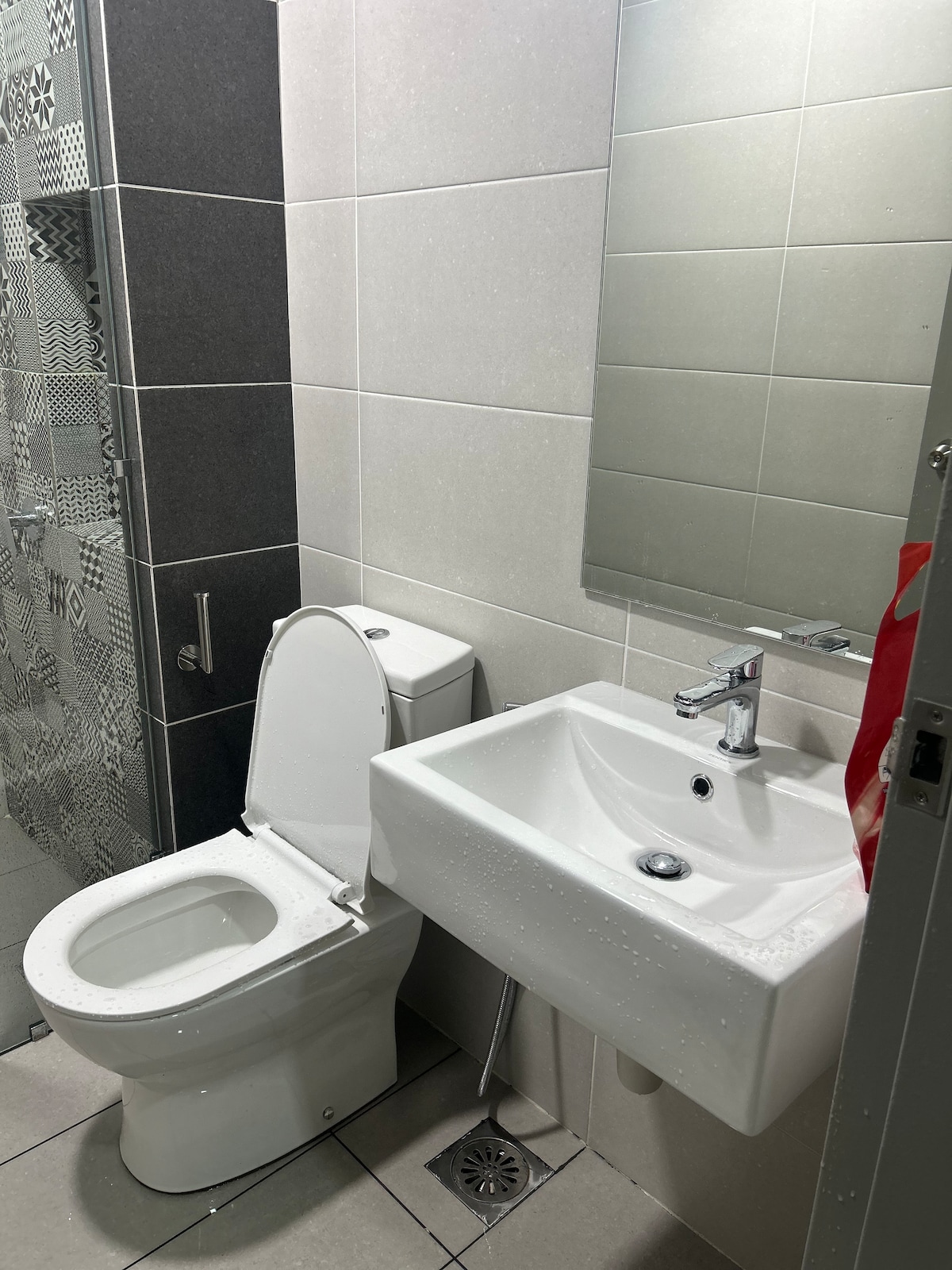 🏢 Modern 3B2B Apartment with Balcony Featuring 3 double beds and 1 double single sofa bed, suitable for families or groups. Each bathroom is equipped with hot and cold water for a relaxing shower. We can accommodate over 80 guests simultaneously, making it ideal for large groups or events. Facilities: Pots, pans, utensils, water dispenser Body wash, shampoo, hand wash, laundry liquid & softener Refrigerator, microwave, washer LED TV, TV box, hairdryer, iron & ironing board