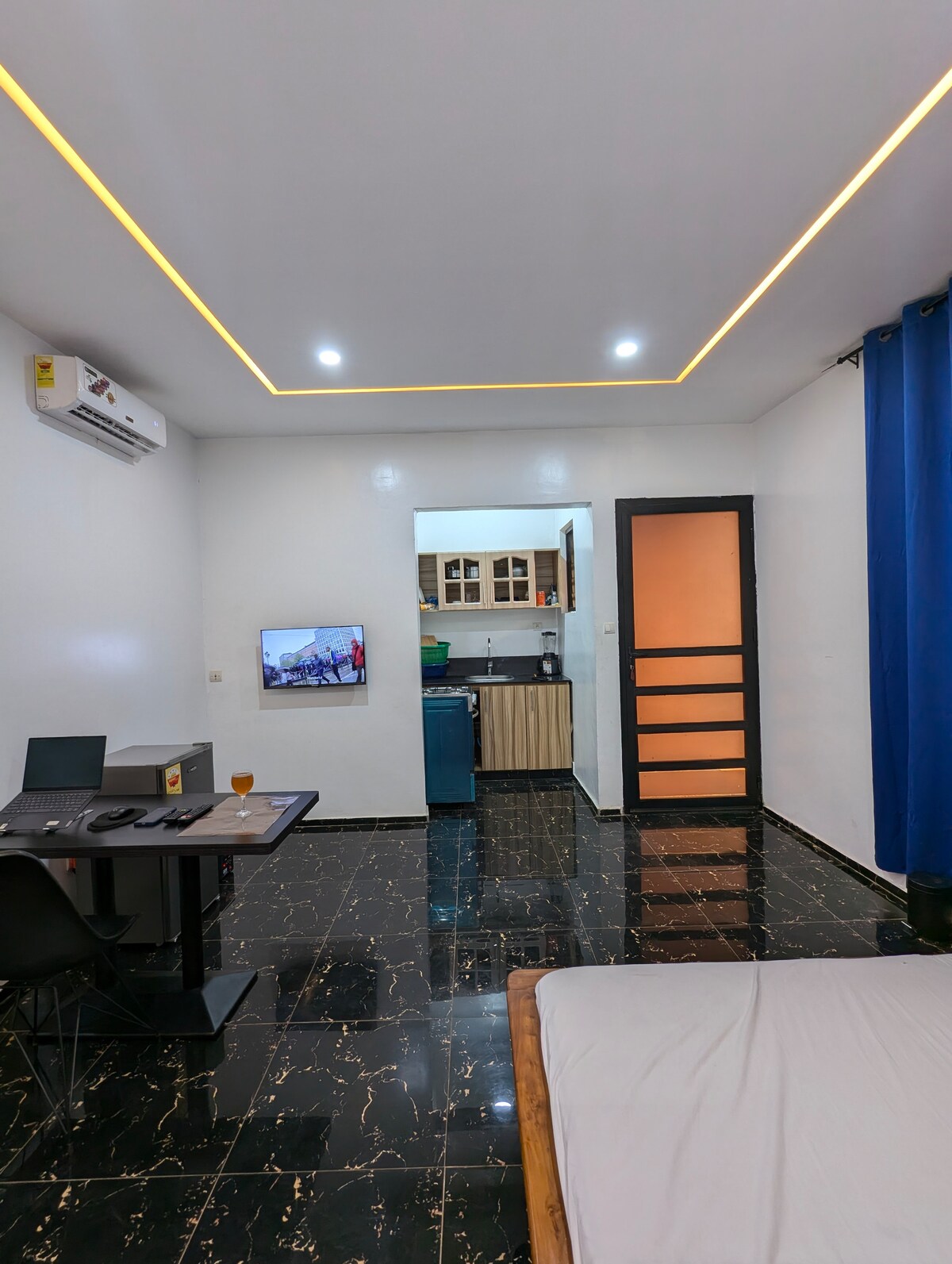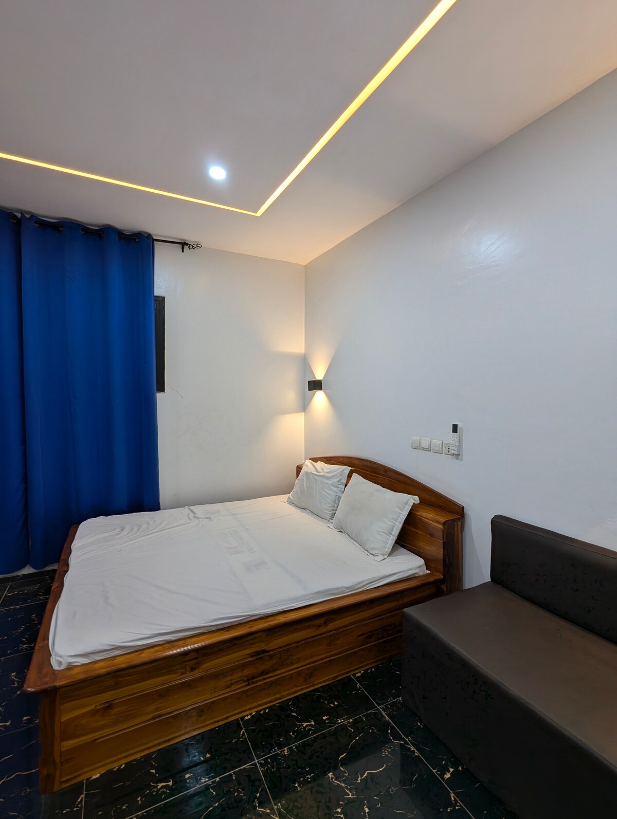 Have fun with the whole family in this chic accommodation located in Lama-Kpédah, 5 km from the center of the city of Kara. 200 m2 FURNISHED VILLA Living room Dining area (table + 6 chairs) 65-inch flat-screen smart TV 3 Bedrooms 01 large bed (190 x 210) per room 01 double-leaf cabinet Private kitchen: 1 mixed stove (gas stoves provided and induction stoves) High-end cooking utensils and cutlery 01 300-liter refrigerator