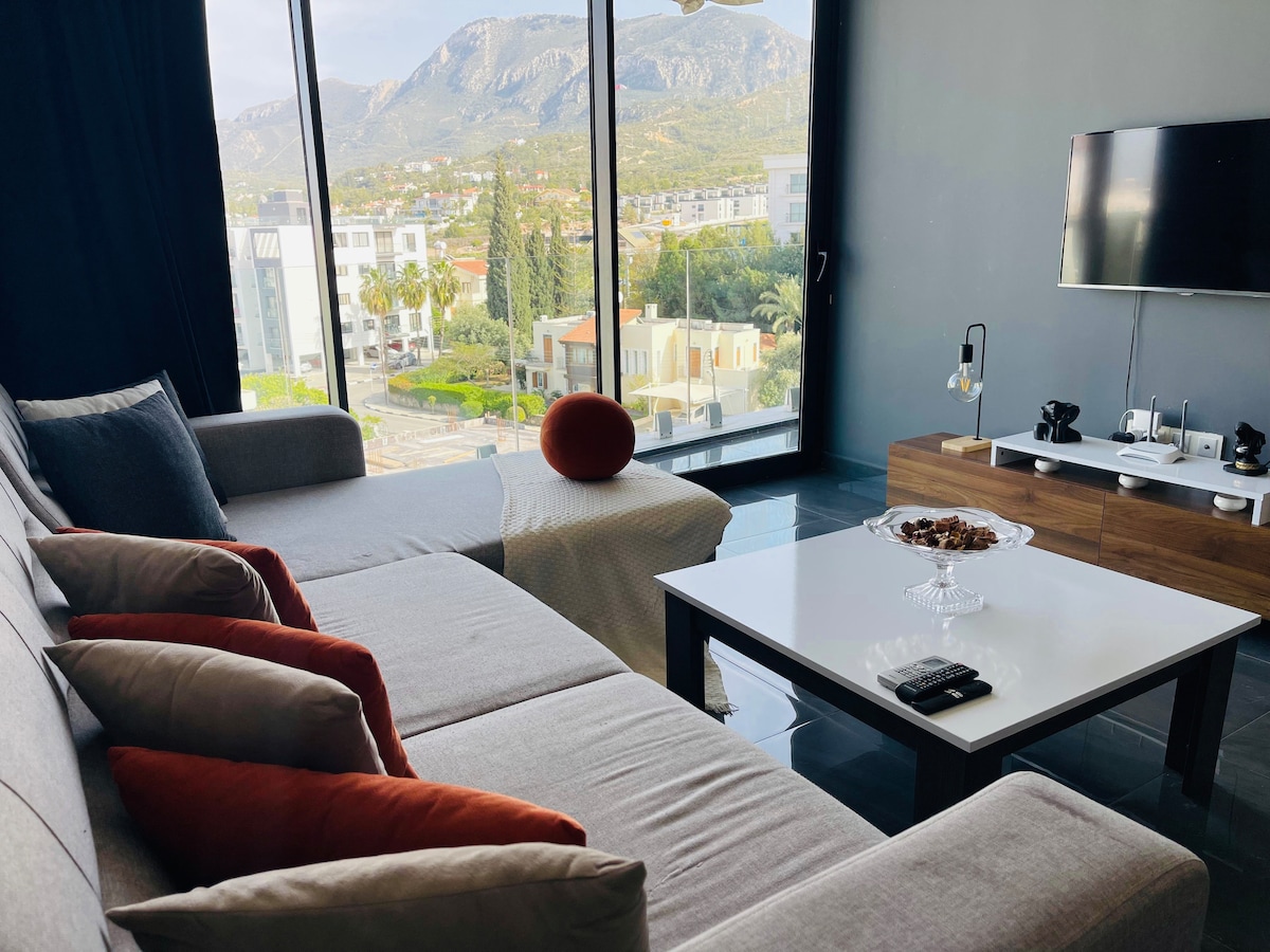 Modern 1-Bedroom Apartment in Girne City Center with Stunning Sea & Mountain Views Experience luxury living in this brand-new, fully furnished 1-bedroom apartment in the heart of Girne. Designed with modern elegance, this stunning residence offers breathtaking panoramic views of both the Mediterranean Sea and the Kyrenia Mountains, providing a perfect blend of natural beauty and urban convenience. Perfect for those looking for a stylish and comfortable home in a vibrant and central location