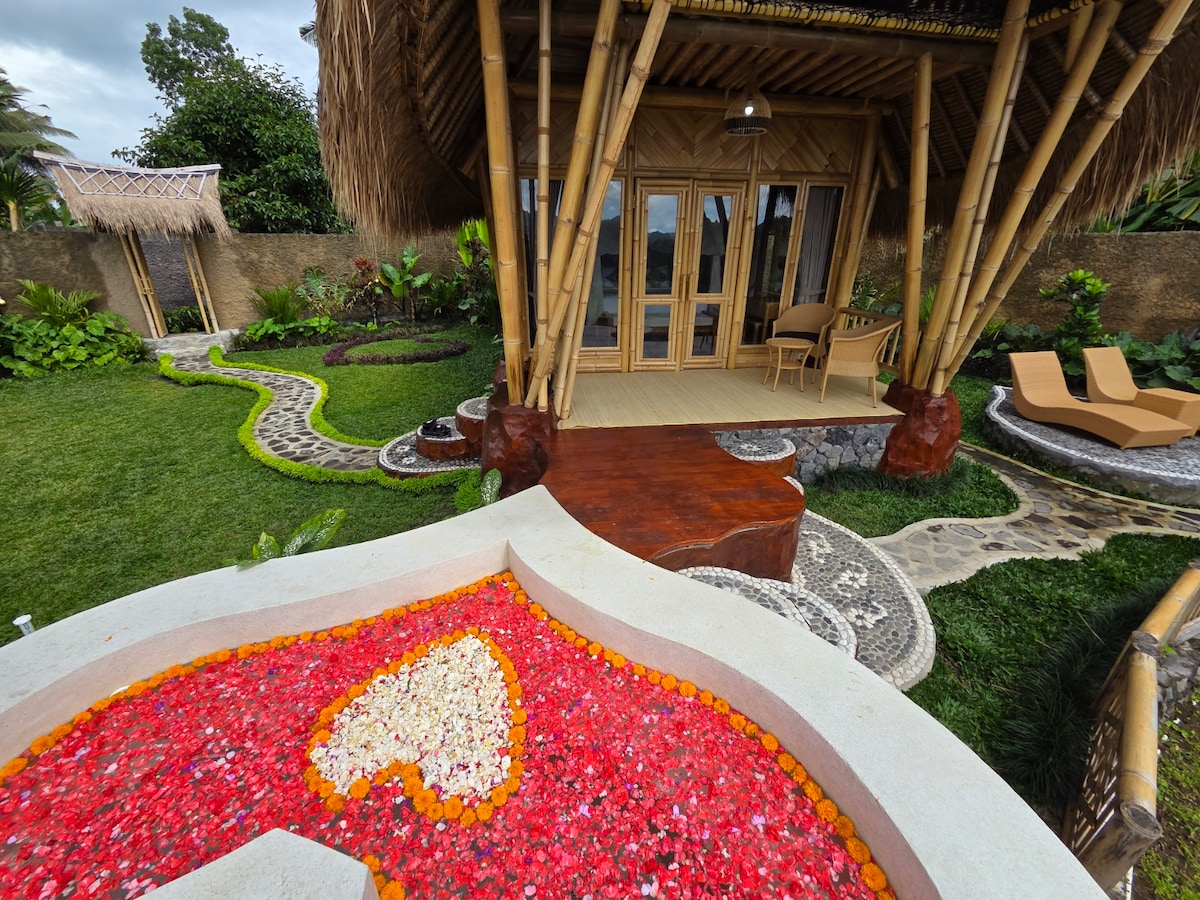 Angel Bali Suites is a special design bamboo house with private open air bathroom. You will definitely get a memorable experience while staying at this charming and unique place. The beauty of traditional bamboo art with stunning natural scenery. Friendly and satisfying service will always be remembered. Very good for finding peace and tranquility of the soul. The radiance of Love and Nature's love will give vibrations to the inside while soaking in the warm Jacuzzi water so enjoy yourself.