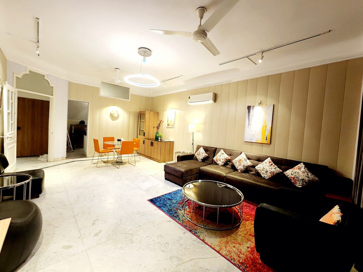 Do you want to bond with family, friends or colleagues in the lap of nature in New Delhi? Do you wish to experience the ideal blend of old-world charm and hospitality with all modern amenities? Do you desire to take a stroll in sprawling lawns under fruit trees or lie in wait for peacocks? If YES then this independent 3-bedroom apartment of Shiv Niwas villa, with private balconies & roof terrace, smart locks, property-wide high-speed Wi-Fi, free car parking & caring lady caretaker-cooks BECKONS!