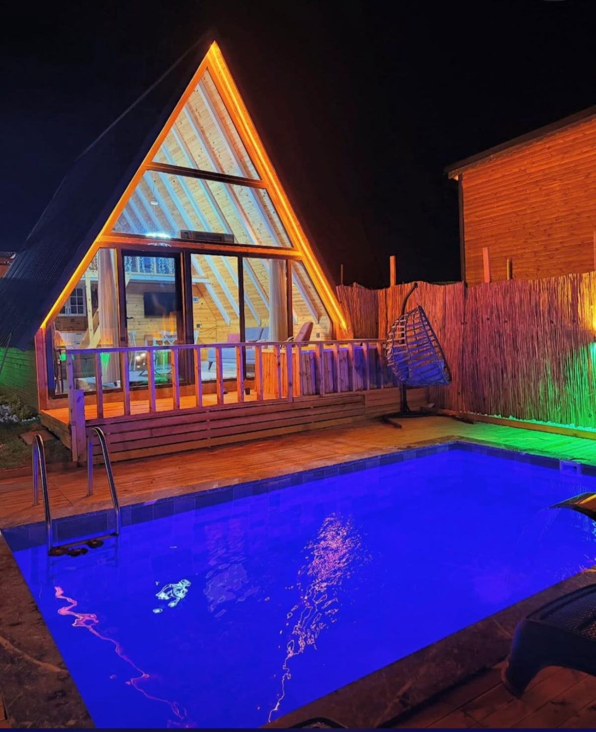Bu sakin, şık mekânda arkanıza yaslanın ve rahatlayın. Standart dome evlerden çok farklı geniş kullanım alanlı,havuzlu,yalıtımlı, klimalı,şömine sobalı, hava temizleyicili,jakuzili, yüzde yüz korunaklı müstakil bahçeli, barbekü imkanlı ve projeksiyonludur. Doğa ile iç içe olan evimizde jakuzinizdeyken şöminenizi yakıp önünüzdeki perdeden projeksiyonun tadını çıkarabilirsiniz. Keyifli sıcacık ve konforlu bir kış tatili için Agu Nature