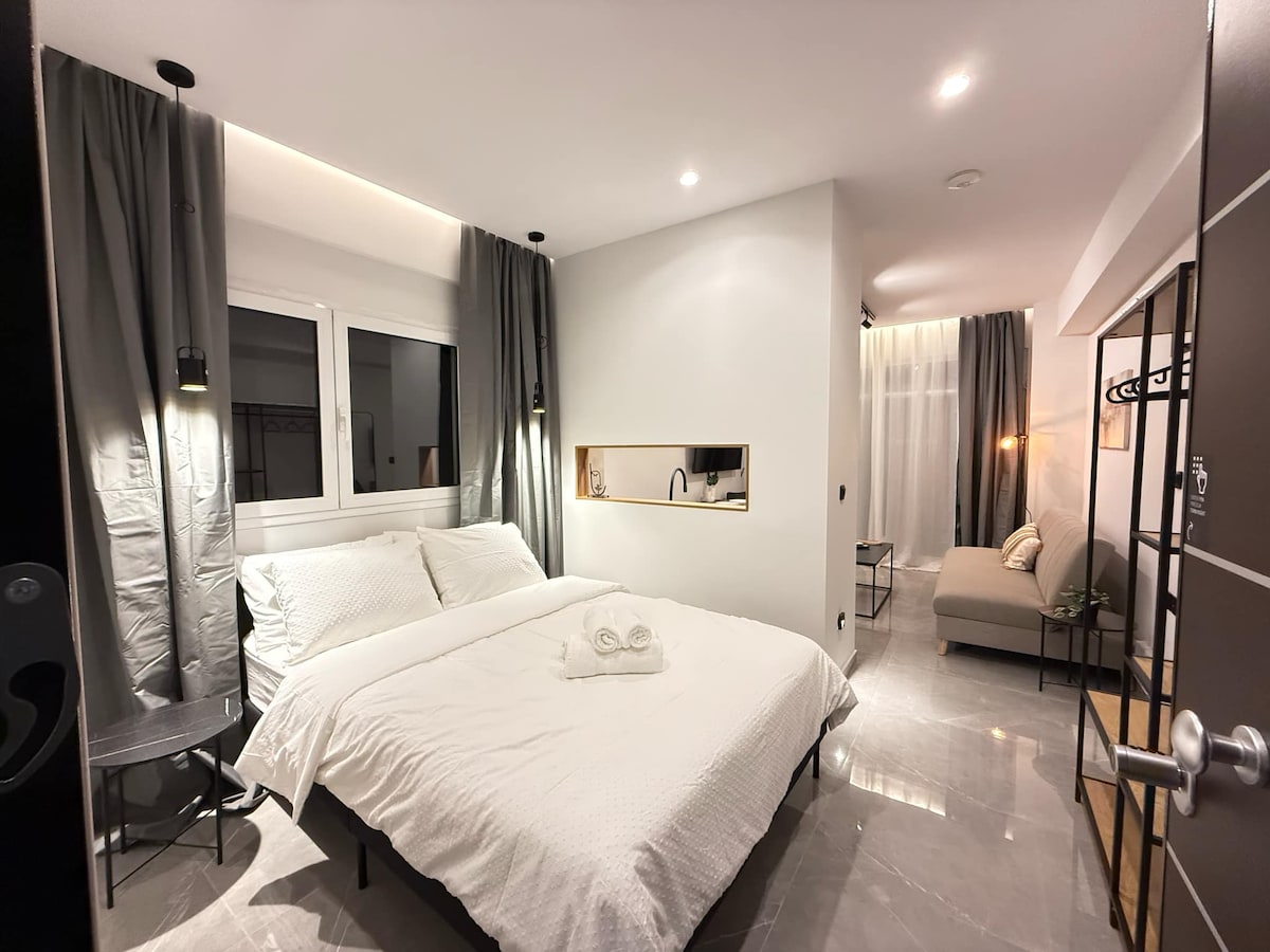 Our modern, minimalist studio offers the perfect blend of comfort and convenience. Located in a safe, peaceful neighborhood, it’s just 20m from Martiou Metro Station and only 800m from Thessaloniki’s beautiful boardwalk. Whether you're here for business or leisure, you'll enjoy quick access to the city center, only 5 minutes away. It is ideal for those seeking a peaceful retreat with all the city's attractions within reach. Ready to make your stay in Thessaloniki unforgettable?!