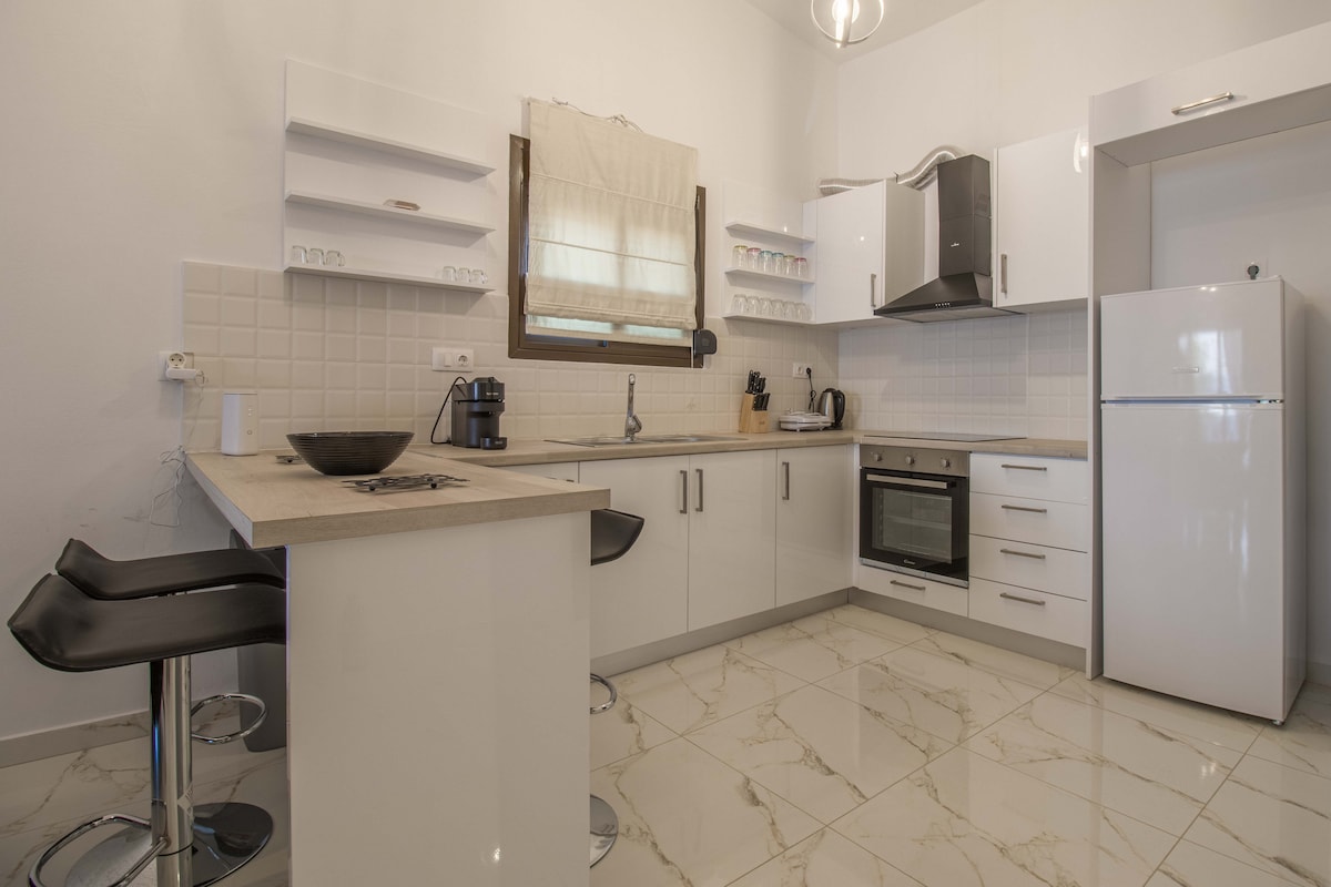 A private two-story accommodation, just 500m from the beach, combines luxury with attention to detail, offering you a unique vacation experience. The spacious patio, with its astonishing views, along with the garden, is the ideal place to enjoy the sun with your favorite drink. The nearby beaches, with crystal-clear blue waters and picturesque coastlines, will take your breath away! Enjoy a breakfast made with local products under the cool shade of the courtyard’s charming corners. The area is r