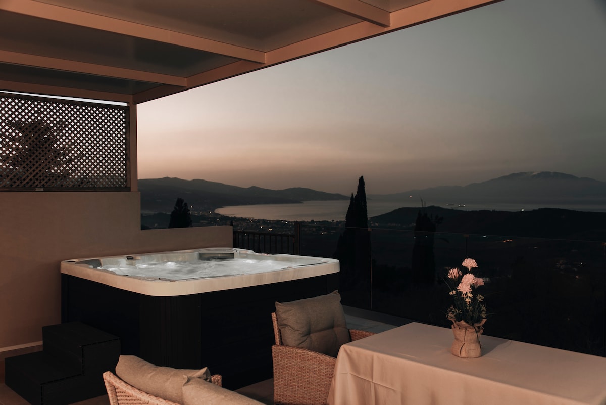 A charming little hideaway where you can enjoy the view from a top the olive trees .A really different and exciting choice for guests who enjoy the look and feel of naturally toned wood , earthy hues and a view to revive the soul.Experience pure bliss at our spa's breathtaking outdoor jacuzzi Surrounded by serene nature, immerse yourself in relaxation as the warm, bubbling waters melt away tension and rejuvenate your spirit..
