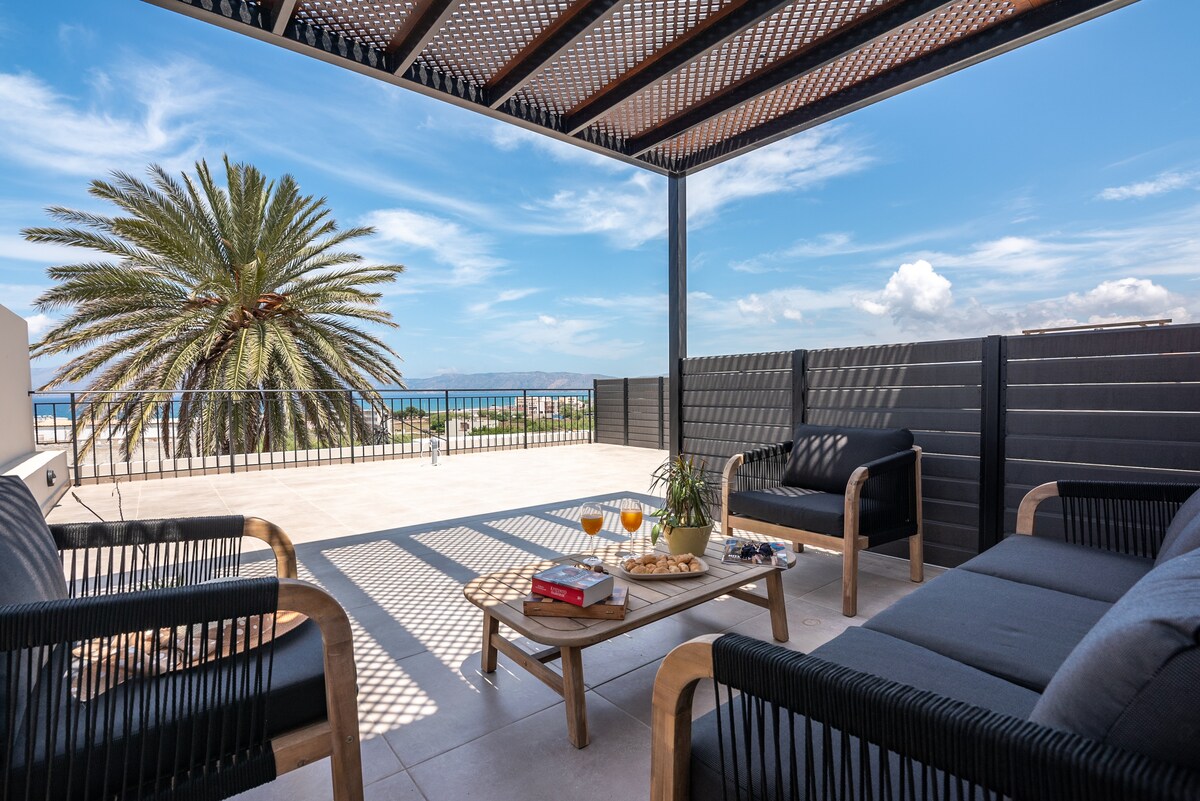 Klo This exclusive villa is majestically located on a hill in northwestern Crete and offers stunning panoramic views of the Kissamos Bay and the sea and the impressive Cretan landscape and hills. With one that stands out from the others, this villa offers a unique experience. Experience the fusion of contemporary style and untouched nature in this exclusive retreat oasis. The view from the infinity pool melts with the horizon and the sea.