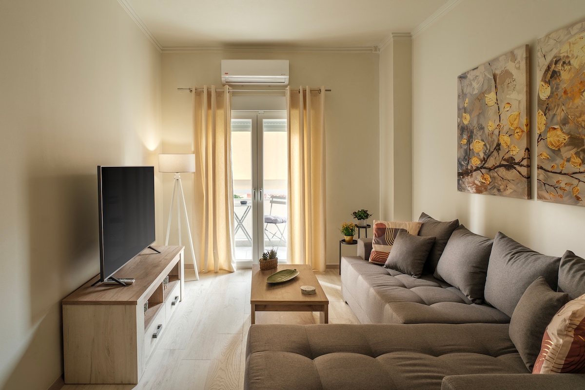 Located just 4 km from Patras center in a tranquil area, the apartment boasts panoramic views of Mount Varasova (west), Vardousia (northeast), and Panachaiko (east). The Patraikos Gulf stretches right in front of the balcony, inspiring its name. Spacious and fully equipped, it's ideal for families and couples, with easy access to the city center and nearby beaches.