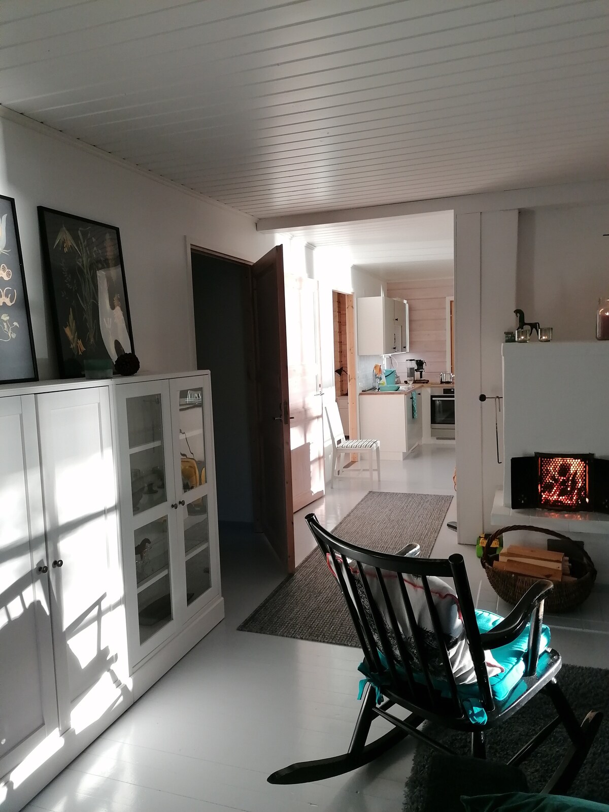 Cozy cottage on the shore of a small river dishes and cutlery can be found in the kitchen. Sauna (for an additional fee), tap water, wifi, washing machine, dishwasher, microwave, coffee maker, washing machine, large terrace with wicker furniture, small dogs can be brought to the cottage, CATS NO! Linens are included in the rent. Double bed, 120cm bed. Downstairs, a sofa bed and a sofa with mattresses (160cm.) The key is in the agreed place, unless I can come to the place myself