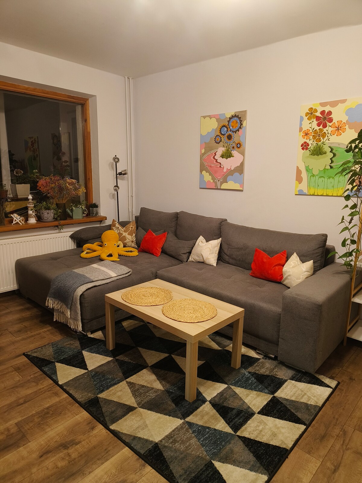 The apartment is close to the center, with a bus about 15 minutes, the stop is about 2 minutes on foot. This apartment has one bedroom with a double bed and a living room with a fold-out double sofa. There is a grocery store ~ 2 minutes on foot, two pizzerias and other restaurants. The apartment is spacious, large kitchen, bathroom, so you will not miss anything!