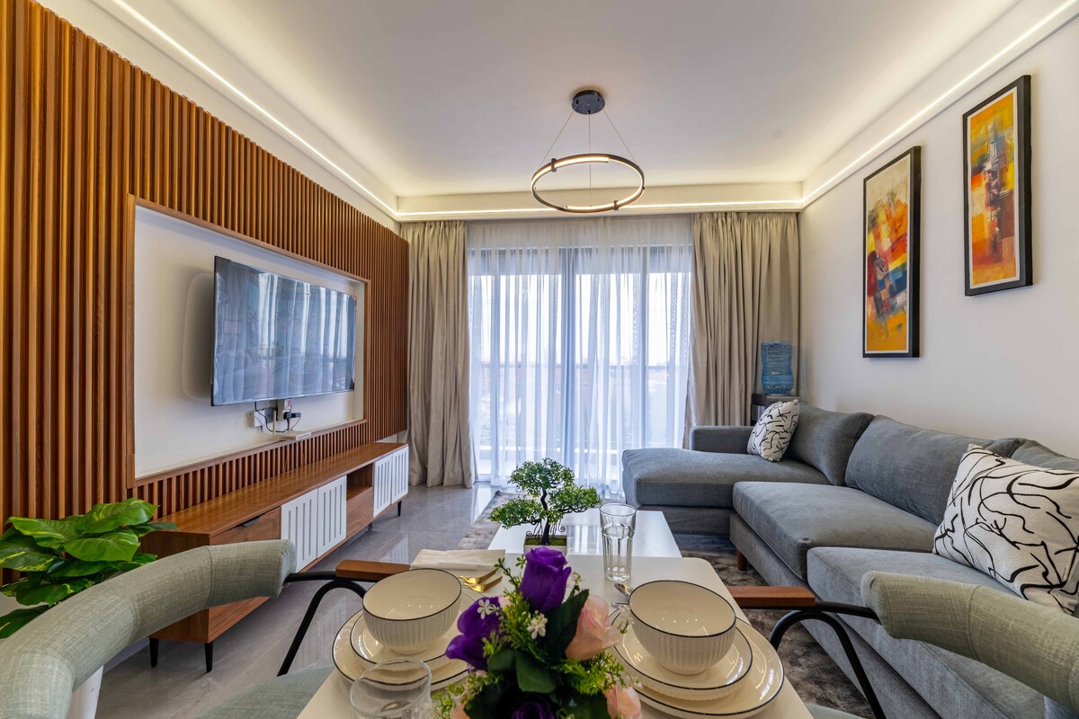 A stylish executive apartment with its own electricity backup. Close proximity to Quickmart, Valley Arcade, Yaya Center and CBD. A gamers haven with a Play Station 5. This tastefully furnished home offers serenity, ambience, peace and quiet to enjoy your stay. Enjoy entertainment on our 75 inch TV, complete with YouTube Premium, Netflix and Free IPTV for all your Live Viewing, Movies and Series. The same is also available in the Master Bedroom TV. The building also boasts a fully equiped gym.