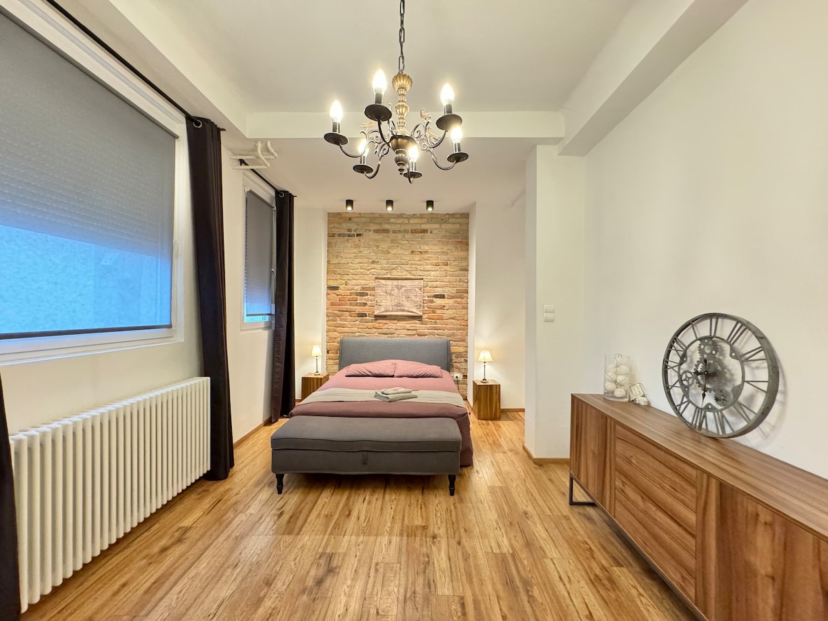 This renovated luxury apartment has been designed and created by award winning interior designers to bring you the highest standards in every respect. If you need a place to relax in comfort and style, look no longer. Perfectly situated in a quiet street right behind the famous Great Market Hall and just a few steps from the Danube bank and Liberty Bridge the location can’t be better. Metro 3 and 4 stations and the „sightseeing” tram #2 stops are 4 minutes walk away.