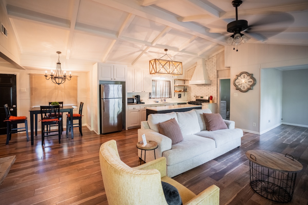 Kick back and relax in this stylish MCM space. We meticulously crafted this 2 bedroom, 1 bath apartment (1500 sq ft) using Mid-Century Modern design elements for a one-of-a-kind feel. Whether you're here on a work trip or traveling with friends/family look no further!! Every inch of this unit has been updated from refinished hardwoods to quartz countertops, all new appliances, & designer furniture. Property has washer/dryer in the unit & off-street parking. This is the ONE!! ☺️ 🏡 ✨