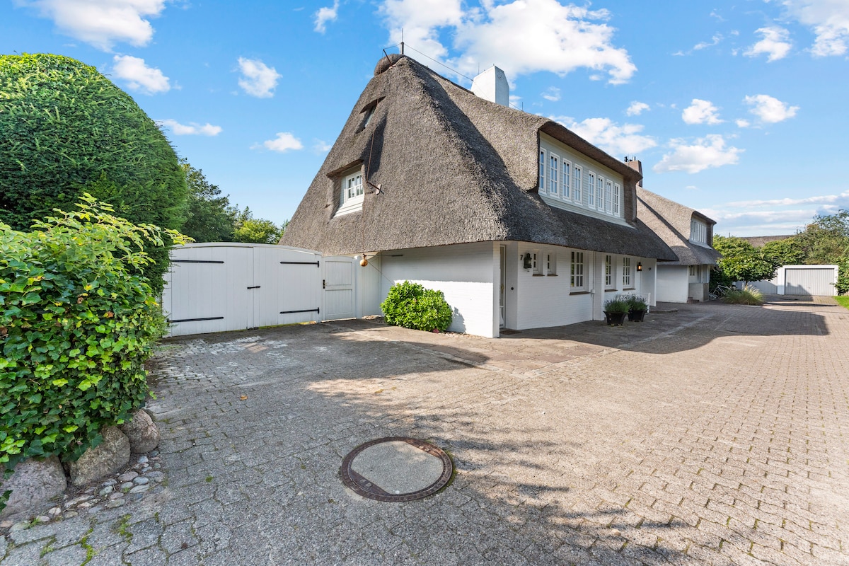 Cozy thatched roof apartment "Birdie" (60 m²) in a picturesque mudflat location in charming Keitum for up to 4 people. 2 bedrooms, bathroom with shower, open fireplace, Wi-Fi, washing machine & dryer (shared), coffee machine, beach chair in the communal garden. Dogs are welcome. Parking nearby (Munkmarscher Chaussee). Non-smoking home.