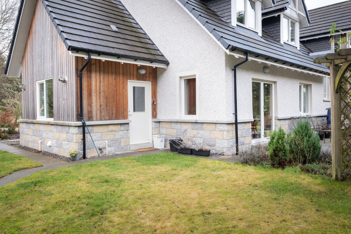 Cosy one bedroom self contained cottage with private garden, seating area, drying area and BBQ . 1 double bed in bedroom. Fully equipped kitchen with fridge freezer, cooker and microwave, washing machine and small indoor drying cupboard. Large bathroom with separate bath and power shower. Lounge with dining area, TV with freeview Easy access for trains on the Aberdeen Inverness line and onward to the West coast or South to the Scottish central belt.