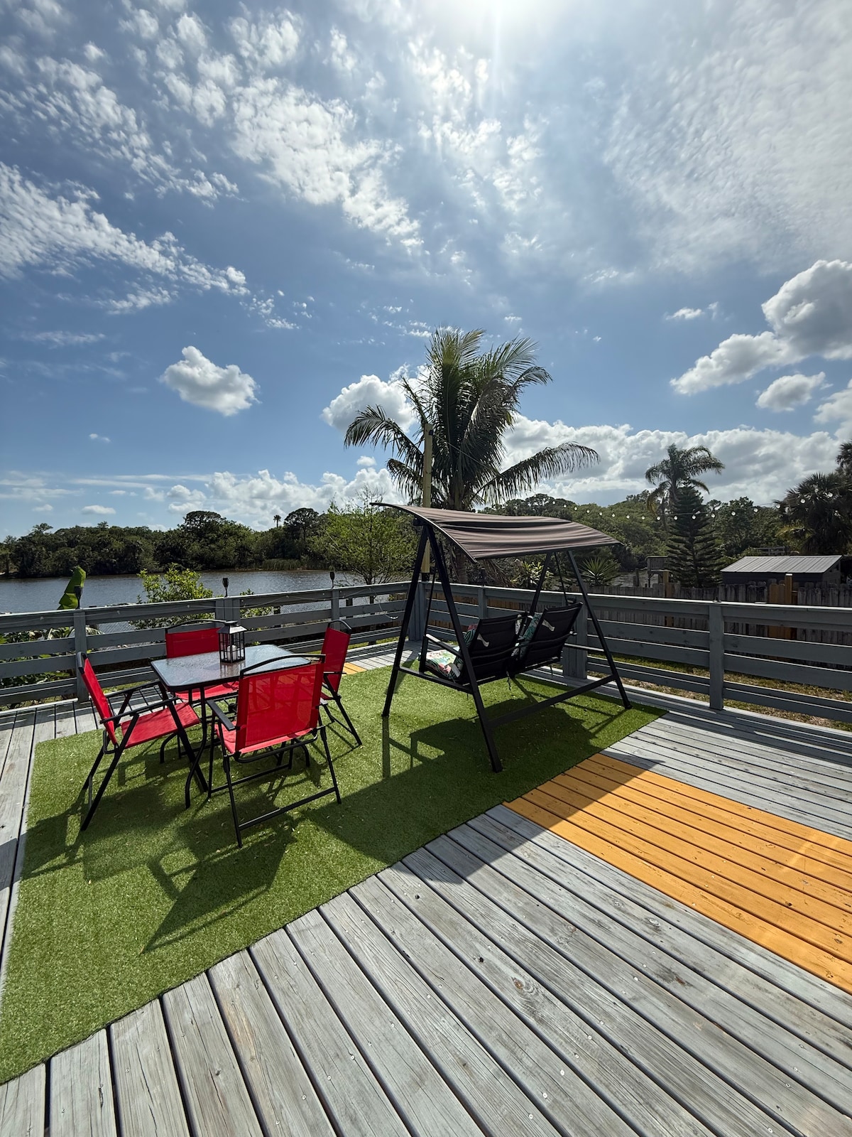 Peaceful Haven Waterfront Acres. Exterior stairs with a deck to access the private suites' entrance. Spectacular river view from the suites. Watch rocket launches, sunrises, sunsets, dolphins, manatees, stingrays, birds, fishing and kayaking. Within easy driving distance to stores, restaurants, access to Hwy 95. Only 38 minutes East of Orlando Int'l Airport. Drive 1 hr to the theme parks, 50 min to Daytona Beach, 9 min to NASA, 20 min to Cape Canaveral Cruise Port, Cocoa Village, Cocoa Beach.