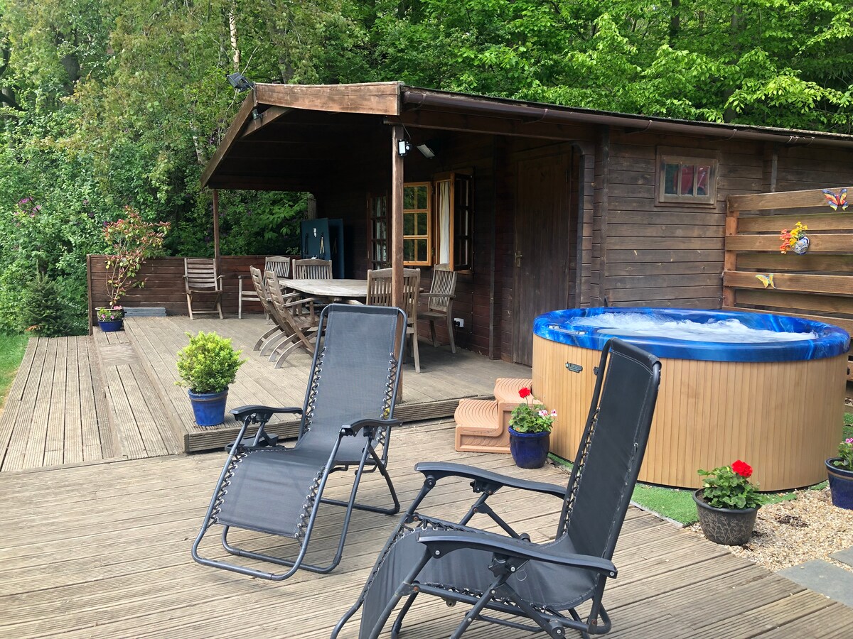 Situated in our natural woodland garden, this beautiful cabin offers plenty of opportunity to escape the hustle of the city, while only being 5 minutes drive from Canterbury. The log cabin includes the use of a hot tub which is between our house and the log cabin as well as the use of a BBQ area to enjoy those nights that you just want to relax next to a fire pit . The log cabin is en-suite - the toilet and shower are inside the cabin. We do have friendly animals.