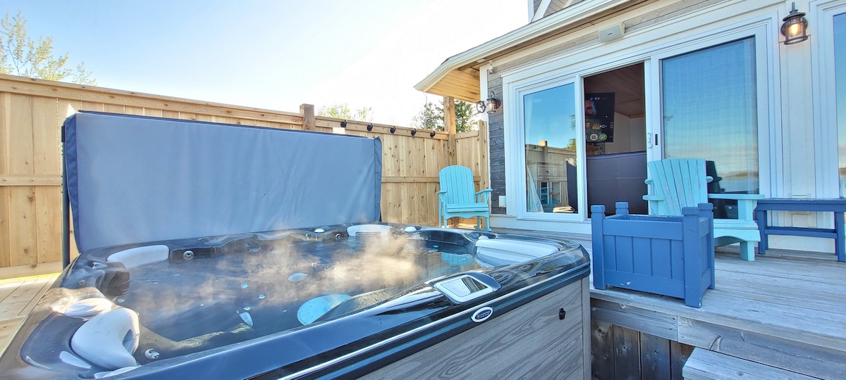 This place is truly one of a kind. Ocean front tiny house cabin situated directly on the Northumberland Straight. You will witness million dollar sunsets/ sunrise while relaxing in an outdoor hot tub. Beach access. Cet endroit où séjourner est vraiment unique en son genre. Cabine de petite maison en bord de mer située directement sur le détroit de Northumberland. Vous assisterez à des couchers de soleil et des levers de soleil extraordinaire tout en relaxant dans un bain tourbillon extérieur.