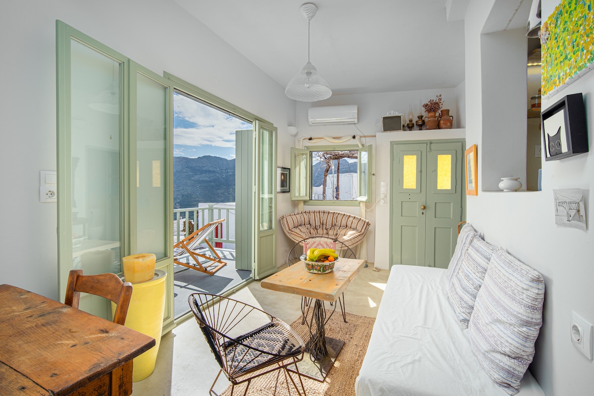 A fully renovated 2025 cottage with mountain and sea views. With its amenities and equipment, it will give you the opportunity to relax and enjoy the Cycladic island of Serifos. It was renovated with respect to Cycladic architecture and with love for detail and quality. From the breathtaking terrace, you will enjoy a magnificent sunrise, relaxing sunset and peaceful nights under the starry sky