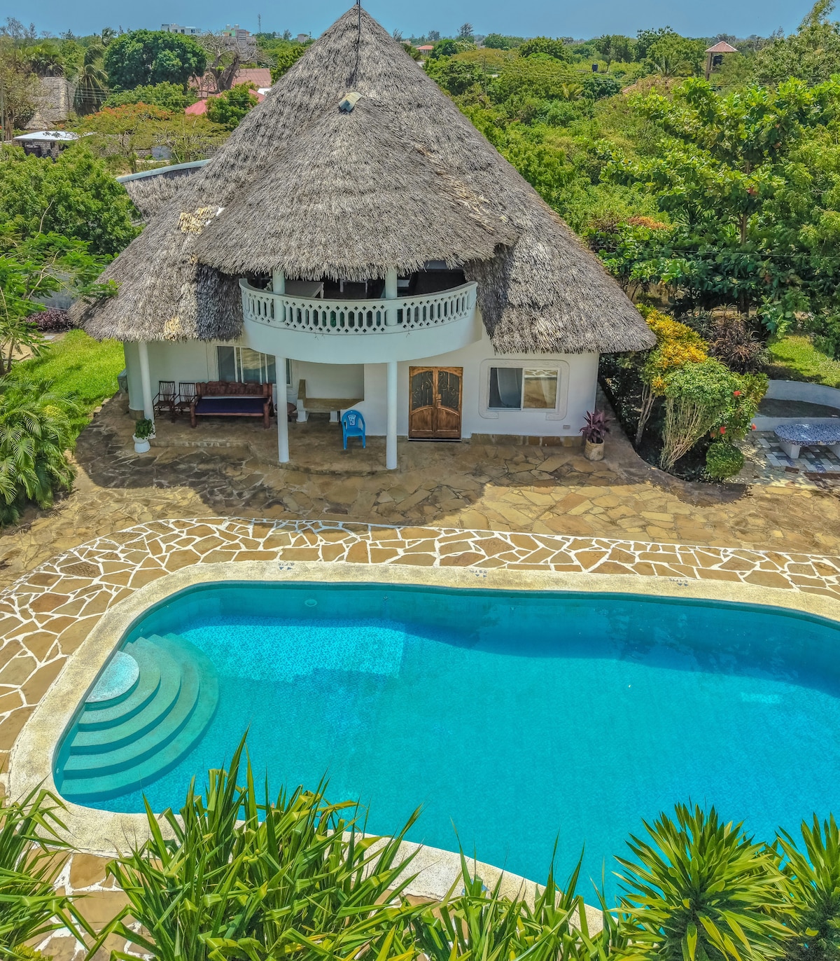 Welcome to Nature's Villa, your tropical retreat in Diani Beach, Kenya! Featuring a thatched roof, spacious interiors, and a private pool surrounded by lush greenery, it's perfect for relaxation. Enjoy garden views, a short trip to Diani Beach, full-time staff. STARLINK WI FI SOLAR BACK-UP Note: The pool has no lifeguard. Guests assume responsibility. The Villa offers comfort, tranquility, and adventure for an unforgettable stay!