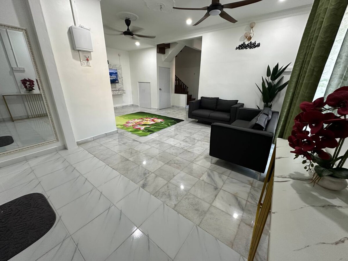 Relax with the Whole Family at Our Cozy Terrace Homestay! Enjoy comfort in our spacious 3-bedroom, 2-bathroom terrace house, perfect for families, small groups, or business travelers. With 1071 sq. ft. of space (1,540 sq. ft. including the car porch), our home offers a relaxing retreat. Designed as your “home away from home,” we prioritize cleanliness, comfort, and a halal-friendly environment, ensuring a peaceful and memorable stay for your trip.