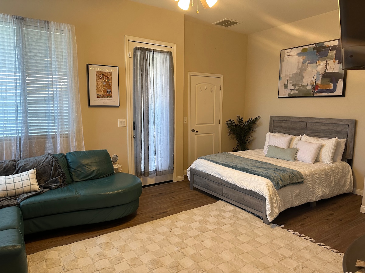 Welcome to your private guest suite, created from a thoughtful garage conversion that’s attached to our home. You’ll have your own entrance with driveway parking right next to the door( check-in). The suite is set in a quiet, friendly neighborhood, giving you privacy while still being part of a family home. For comfort, air conditioning and heating are centrally controlled from our side of the home. We keep the temperature within 72 - 76 summer. Gladly adjust to your comfort.