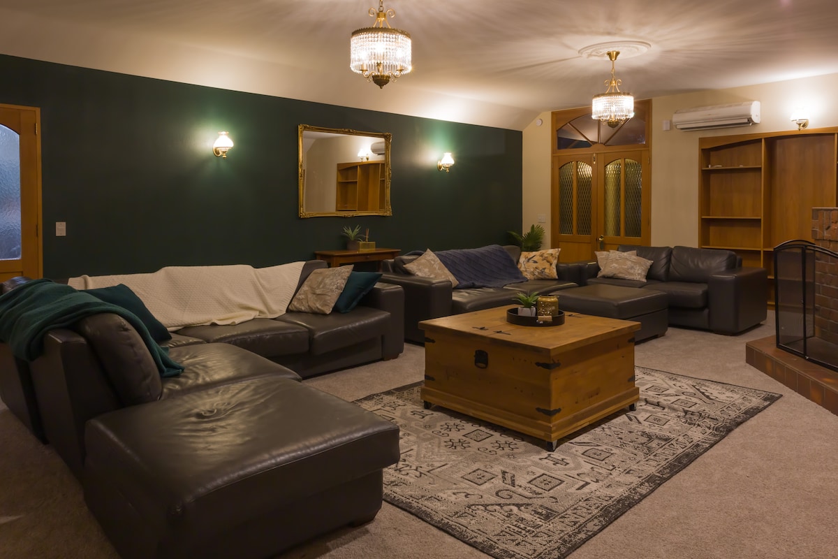 This huge architecturally designed house was built in the 80’s and recently renovated with new paint, new floors, curtains, bathrooms and kitchen. This is the perfect escape for the large family or group that wants to be close to town but still enjoy the peaceful tranquility of the South Canterbury countryside. 10 minutes to Timaru CBD and beautiful Caroline Bay, 8 minutes to Pleasant Point, 25 minutes to beautiful Geraldine and just over an hour to the gorgeous tourist destination of Tekapo.