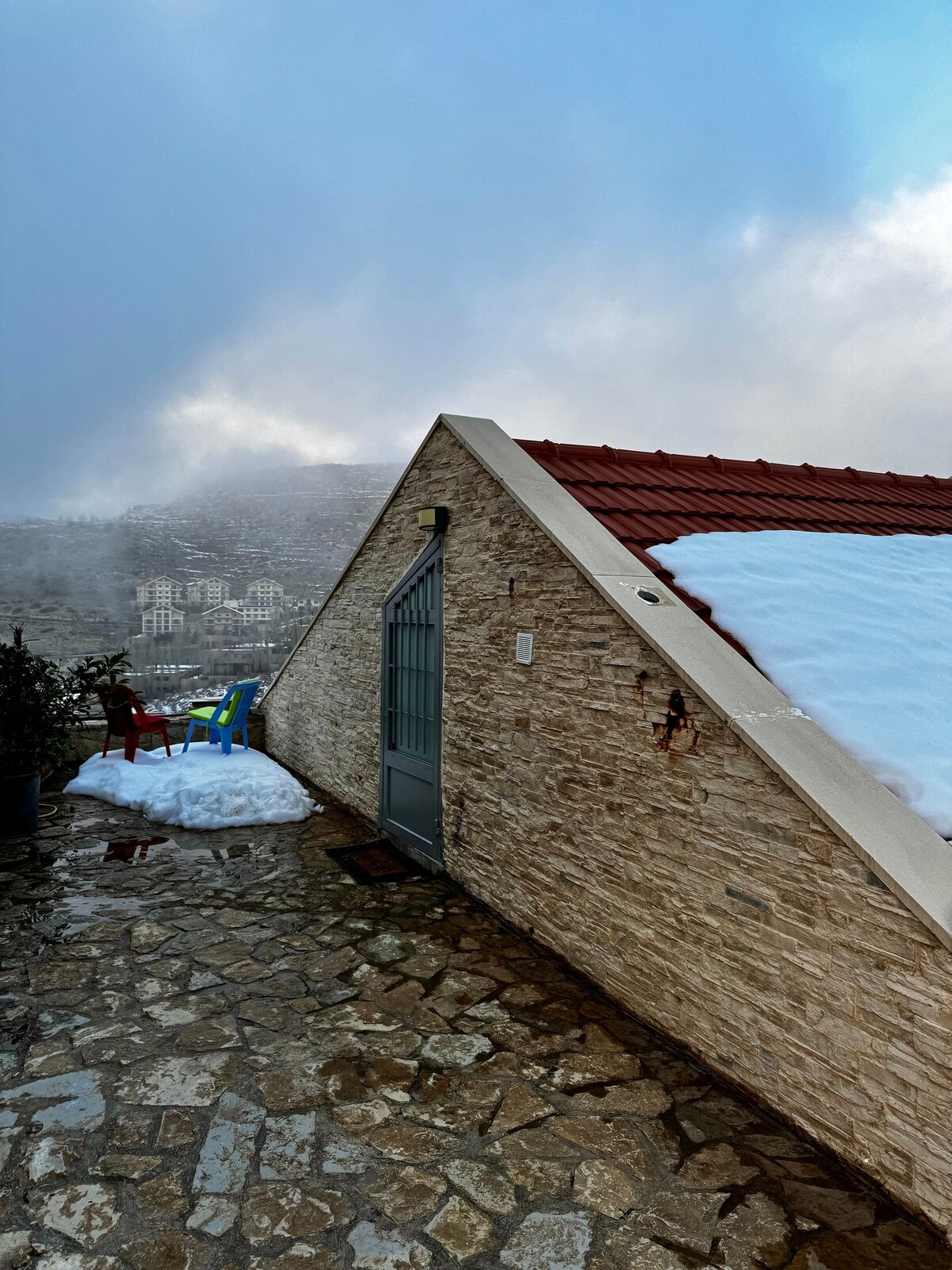 A cozy and sunlit mountain loft in Faitroun, featuring floor-to-ceiling windows, panoramic views, warm interiors, and full heating. Perfect for peaceful getaways, ski weekends, or longer mountain stays.