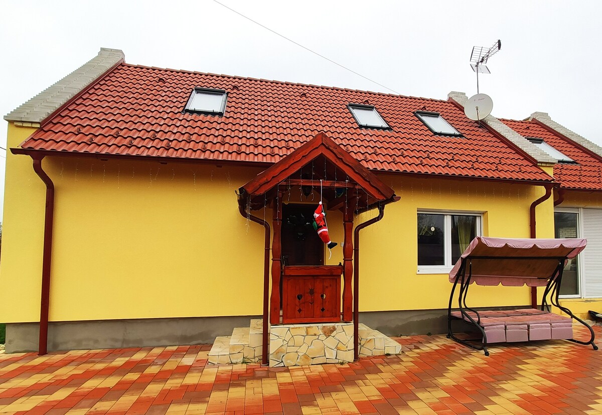 A new, self-contained, green belt house with garden, close to the city center, in a quiet environment, on 2 floors, with 2 bedrooms, living room, large terrace, barbecue and garden pond makes your holiday perfect. This private accommodation is located in Hungary's most famous spa town, Hévíz. 6 km from Lake Balaton, swimming, hiking, entertainment and many attractions in the area.