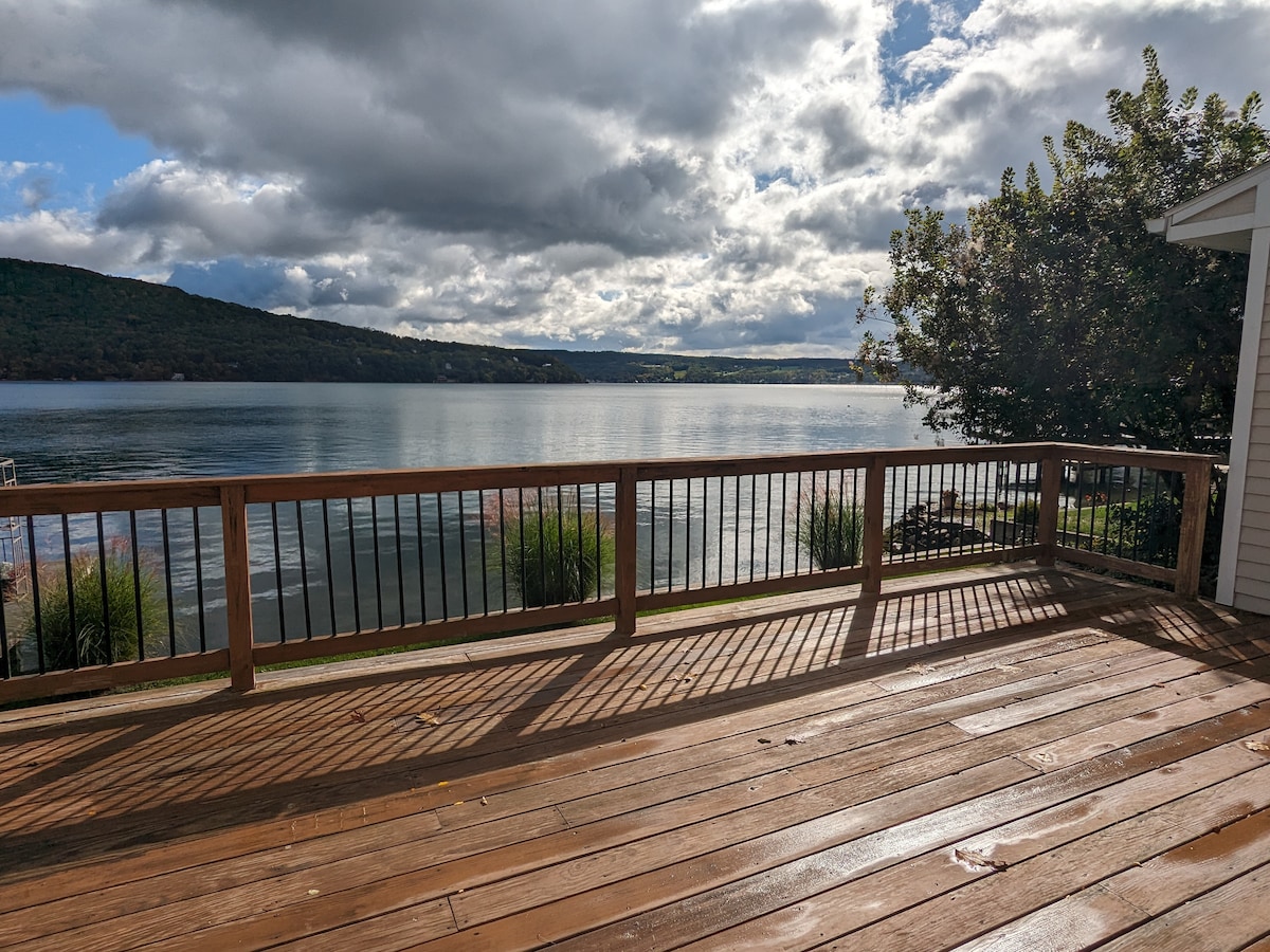 Our special place sits upon 5 quiet acres on the majestic Seneca Lake. With the large wrap around porch, you will get lost in this beautiful setting while sipping on a glass of wine from many of our local Wineries. On the inside the first thing you will notice is the open floor plan, granite counter tops, and wall to wall windows with views for days. This property sleeps up to 6 guest, has 2 bedrooms up stairs and a large day room that can act as a 3rd.