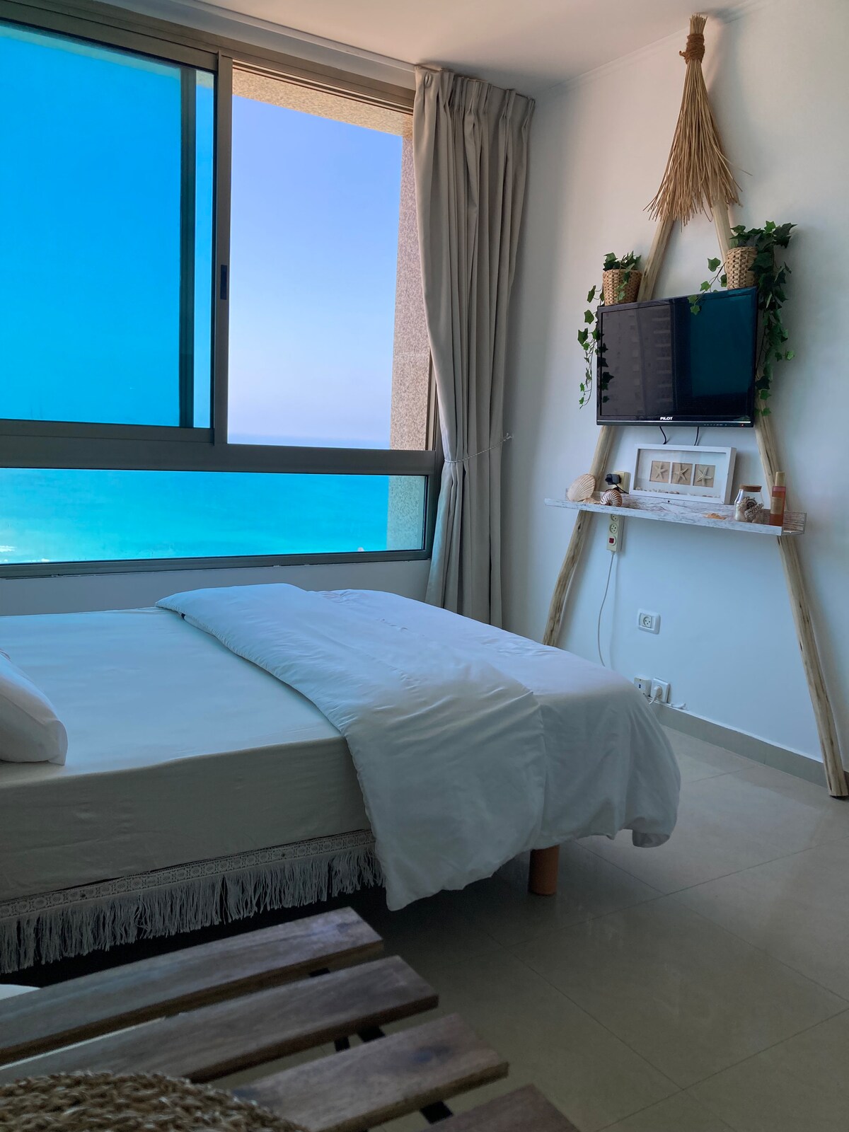 this hotel on the center of the center! you have here all the things you need under like supermarket,rental cars,bars,pool,resderent and the sea ,free parking,gym,jacuzzi.theapartment is decorated in tulum style with trees from indonesia and tropical atmosphere.there is a large window overlooking the seaand the beach promenade of the city of netanya .there is always hot water,air conditioning,tv,towels and sheets amount and tools. everything is ready for your vocation!