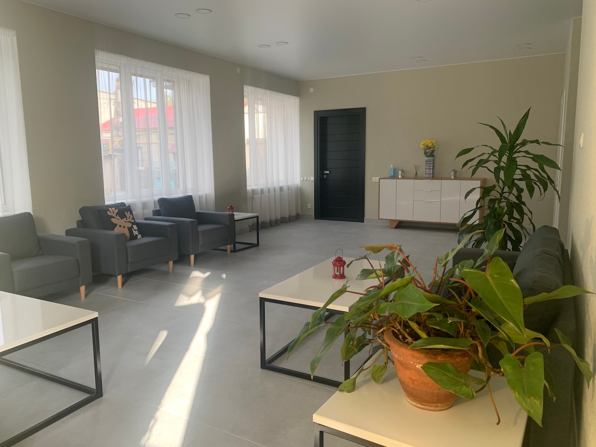 The studio apartment, a restored antique building, with an internal semi-floor is very well located in the heart of the city. There are restaurants, cafes, and coffee shops nearby, as well as a private brewery. The room is equipped with a kitchenette, there is a microwave, electric kettle, compact refrigerator, filter for cleaning drinking water, iron. Near the premises there is a playground with a fence for outdoor recreation in the warm season.