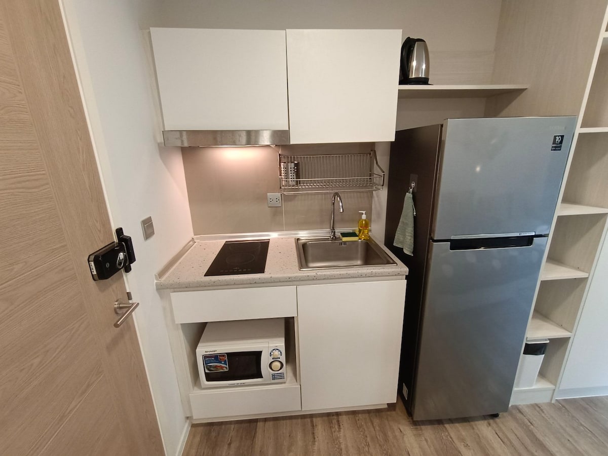 Welcome to my apartment, I hope you have a great trip to Thailand. The house is located in RAMA9, a loft apartment delivered in 2024. The room is about 40 sqm, including a bedroom, a living room and dining room, a kitchen and a bathroom, easily accommodating 3 adults. (tps: When the number of guests in the order is 1-2, by default there is only one bed in the bedroom. If you need to add a sofa bed, please fill in the number of people as 3 at the time of booking, and contact us after booking to inform us, we will arrange staff to prepare the sofa bed before your stay) The price includes the entire house, fitness center, swimming pool, and shared office space.