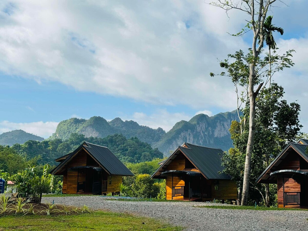 My accommodation is managed by my family. It is just 7 minutes from the pier to Cheow Lan National Park. If you stay here, my father will pick you up from the nearby passenger drop-off point, including when you want to take the boat to Cheow Lan National Park. This accommodation is a fruit orchard. Pomelo and durian will bear fruit in the next 2-3 years. If you want to relax and be close to nature, an area with a view of mountains and a stream. And there are restaurants nearby.