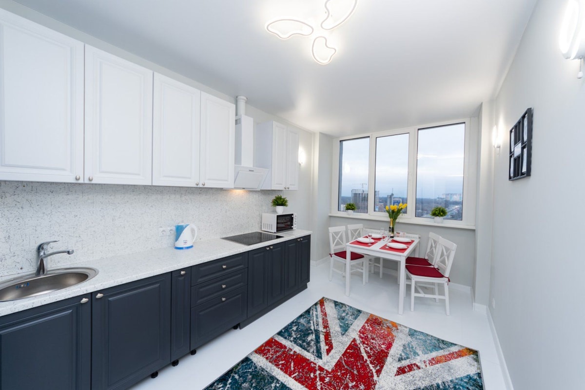 The apartment is located on the 6th floor near Olimpiyska metro station (700 meters). In a matter of seconds, you can get to a reliable shelter - an underground parking lot in 14 flights of stairs. The windows are turned from the street to the middle of the yard. Megamarket supermarket is 400 meters away. Photo/video shooting requires separate approval from the host. Stylish apartment in the very heart of the city of Kyiv. Overlooking the sunset from the 6th floor of the modern highrise, an apartment complex CHICAGO Central House.