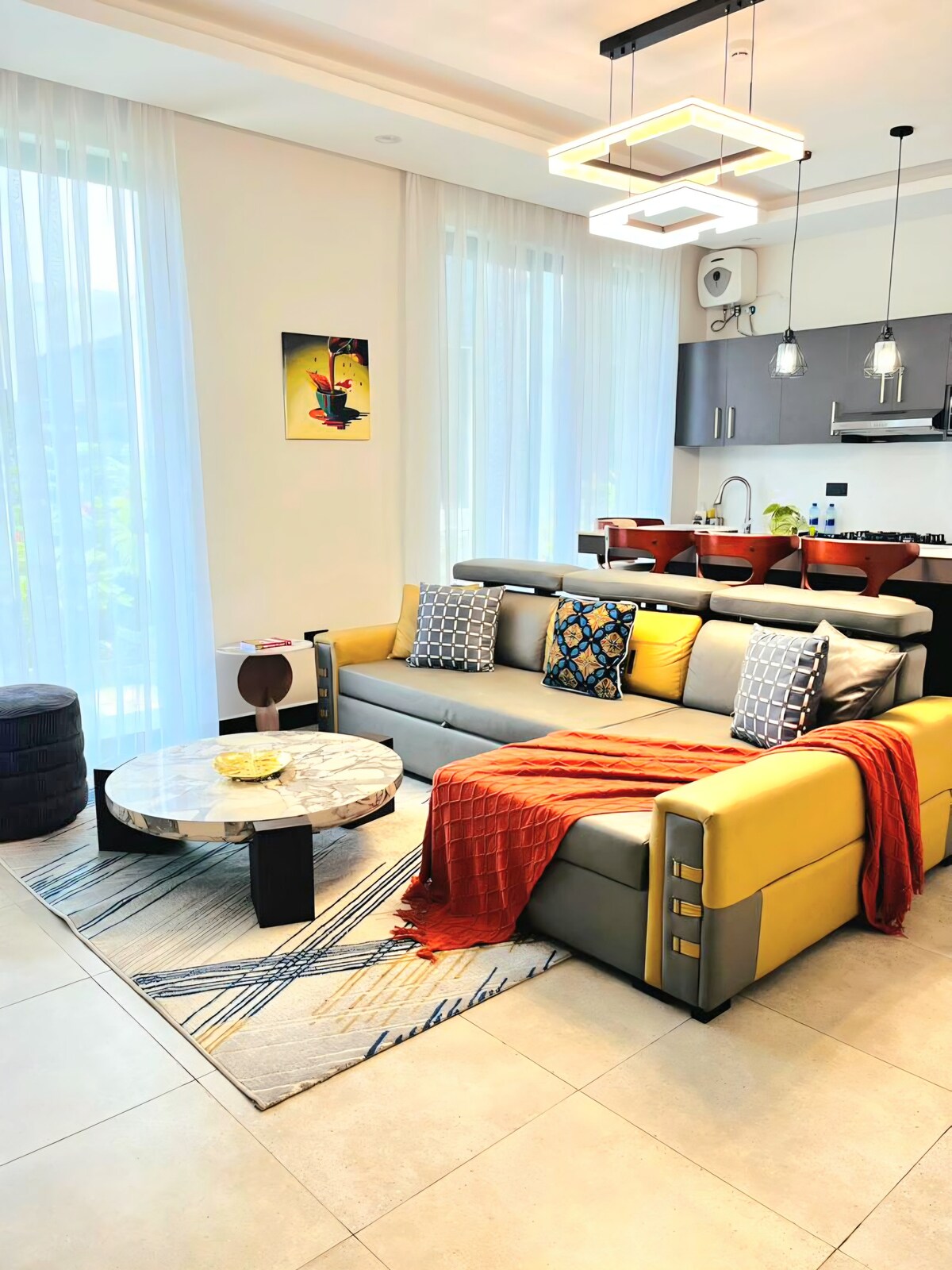 Whether visiting Dar es Salaam for business or leisure, our apartment offers a sophisticated city escape where comfort, privacy, and convenience meet. This elegant 1-bedroom residence is set in a prime, serene neighborhood near Masaki, Msasani, CBD, and Upanga—just 1 minute from Dar Village Mall and Kuku Kuku Bar & Restaurant. Enjoy a cozy bed, private bathroom, 32” Smart TV, sleek workstation, modern lighting, and ample storage—perfect for relaxing, working, or exploring the city with ease.