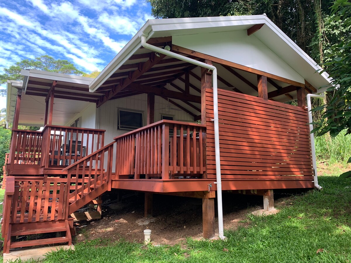 Our house is located on the north coast of Rarotonga in the village of Tupapa . It has modern furnishings including a spacious lounge suite, a dining table with ample room to seat six or you can open it out if you have guests for dinner and all the necessary appliances . It has 2 bedrooms with a queen bed in and the 3rd bedroom has 2 single beds. The master bedroom has a queen size bed and its own entrance to the shower and toilet. Each bedroom has its own set of drawer