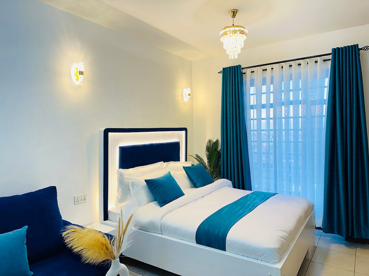 Modern 1-Bedroom Apartment with Stunning City Views in Kilimani Welcome to your stylish home away from home on the 16th floor! This newly built, beautifully furnished one-bedroom apartment offers a cozy, homely vibe with breathtaking city views. Enjoy a restful night on a comfortable mattress with clean white linen, and unwind with a 55” Smart TV for your favourite shows and movies. Start your day with complimentary coffee, tea, and sugar, and refresh with
