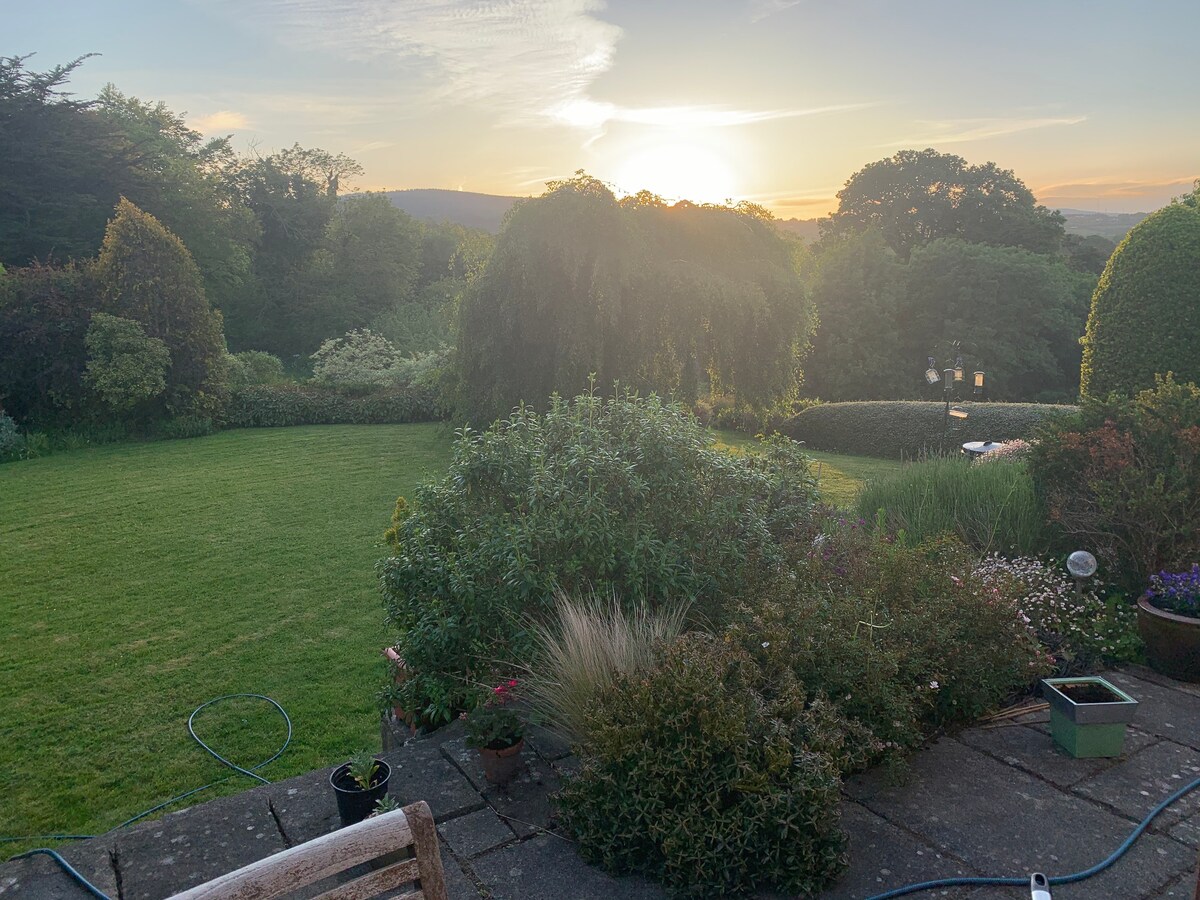 The apartment at Beechwalk House is a bright and airy self-contained property with Entrance Hall, Living Room, Kitchen, and Double Bed Room with Ensuite Bathroom. There is free parking and a patio to the rear with views over lovely gardens to the Wicklow Mountains to the west. It is a tranquil and peaceful location with beautiful sunsets over the mountains.