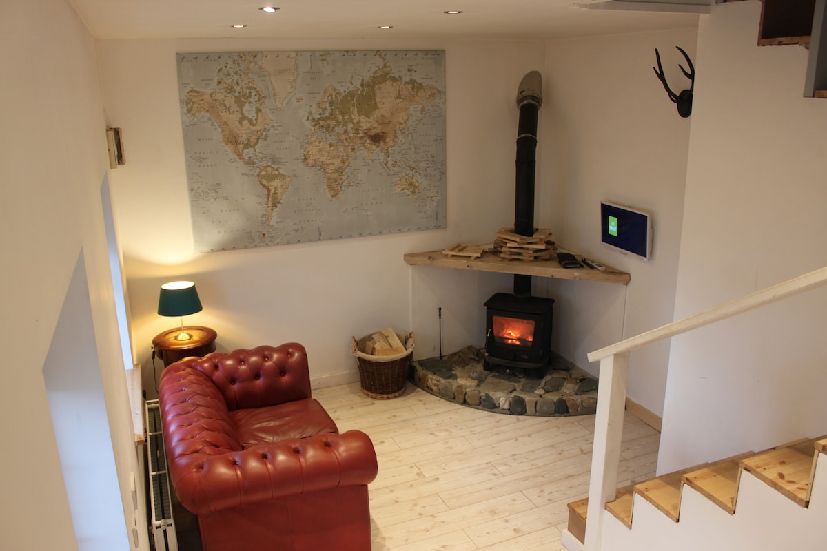 Killybegs town centre, a convenient one-bedroom apartment, twin beds, on the ground floor, opposite the fishing boats and harbour. Beside shops, restaurants and cafes and a 5 mins walk to ATU college and marina. Ideal for longer stays and remote working. 30 min drive to Sliabh Liag cliffs on the Wild Atlantic Way. Comfortable double & single beds Desk and chair. Flat screen TV. Free WIFI internet. Large wardrobe Stove fireplace. Kitchen/Living room. Free parking on street