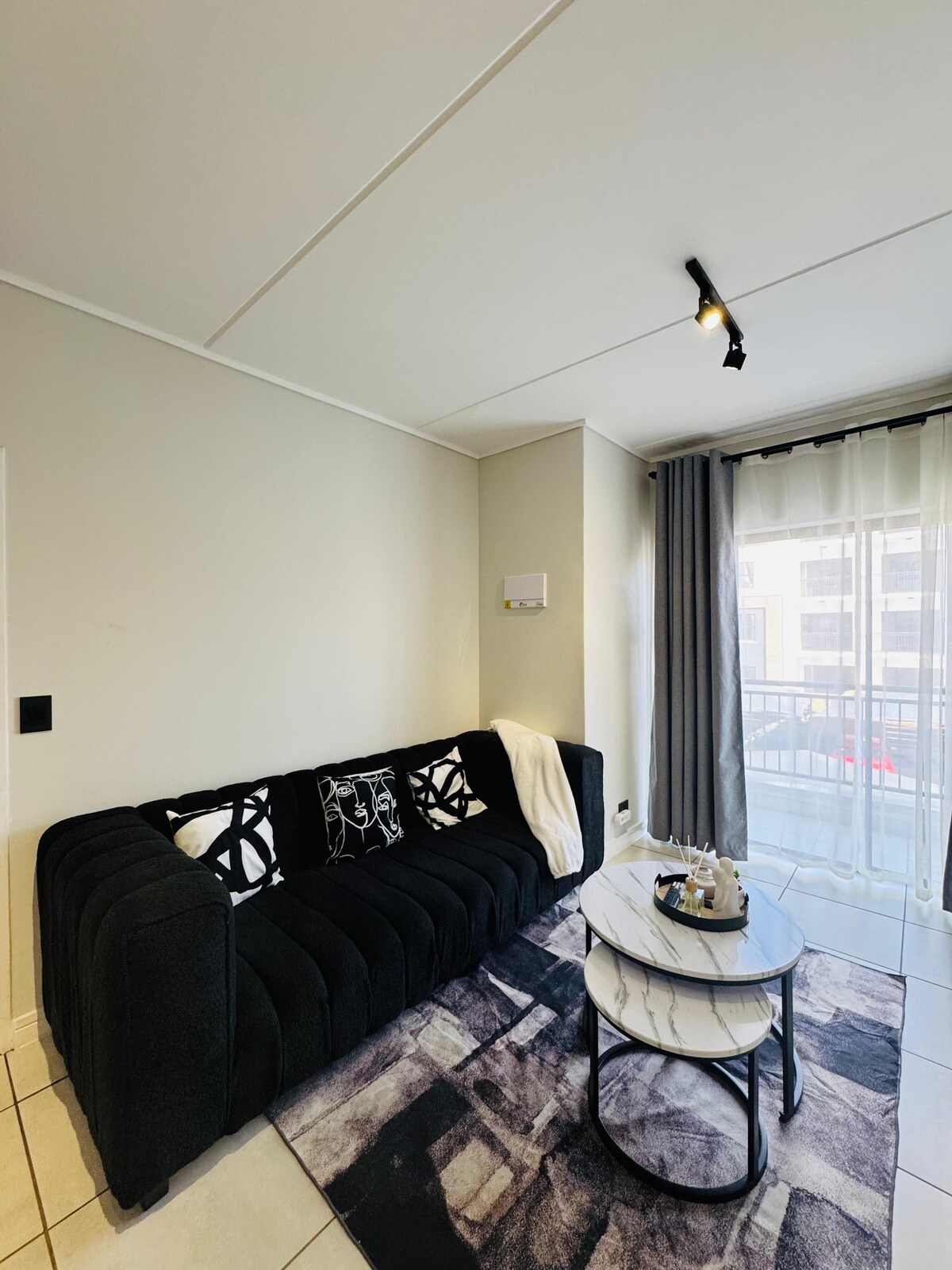 Sleeps 2 - Modern 1 bedroom apartment with double balcony that is beautifully furnished with all essentials provided to make your stay comfortable. At South Africa's first beach like crystal clear lagoon to be used for an array of water sports. The lagoon offers integrated swimming pools with two large beach area surrounded with board walks and resting areas. Disclaimer: Uber and Bolt currently not allowed inside the estate, but deliveries are allowed inside.