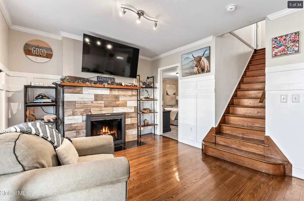 In the center of downtown Glens Falls, this historic building is a remarkable place to stay! From the panoramic views, to the amazing food, and places to see nearby, you will be glad call this your home base. It is a 3rd story walk up with original floors (creak in some spots), window frames, and ceilings throughout. You will appreciate how bright, beautiful, and welcoming this private apartment is.